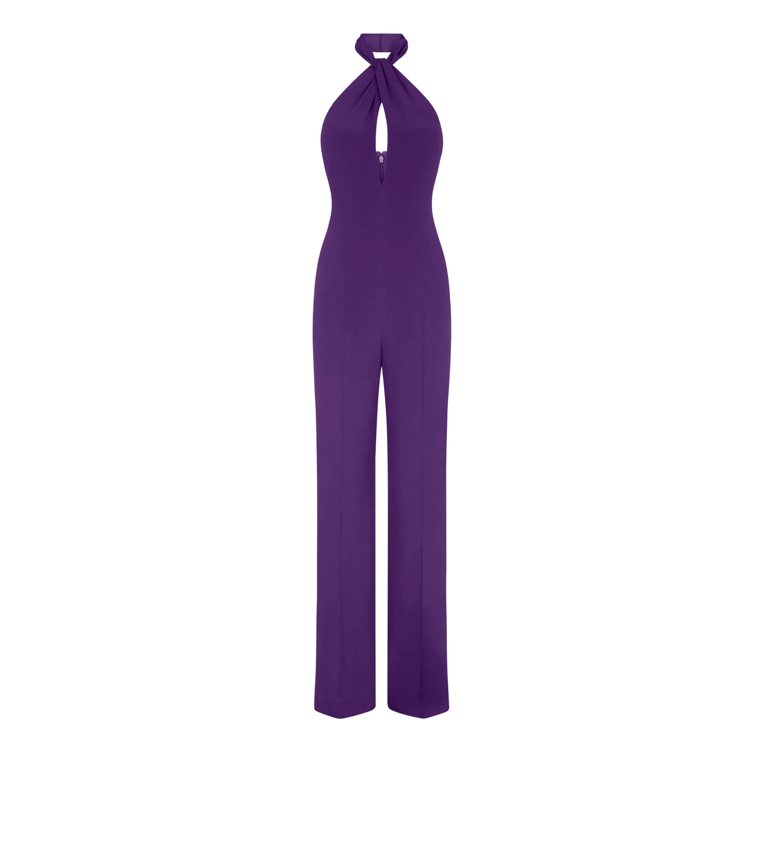 - HALTERNECK TWIST FRONT JUMPSUIT - FRONT CUT-OUT DETAIL - INVISIBLE TONAL HOOK AND EYE FASTENING AT THE CENTRE BACK TOP COLLAR - STRAIGHT LEG FIT PANTS - INVISIBLE CENTRE BACK ZIP - FLOOR LENGTH - FULLY LINED - CRAFTED IN ROUND SILK SABLE' - 100% SILK