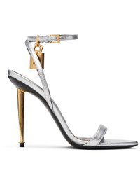 Silver Nappa Padlock Pointy Naked Heeled Sandals