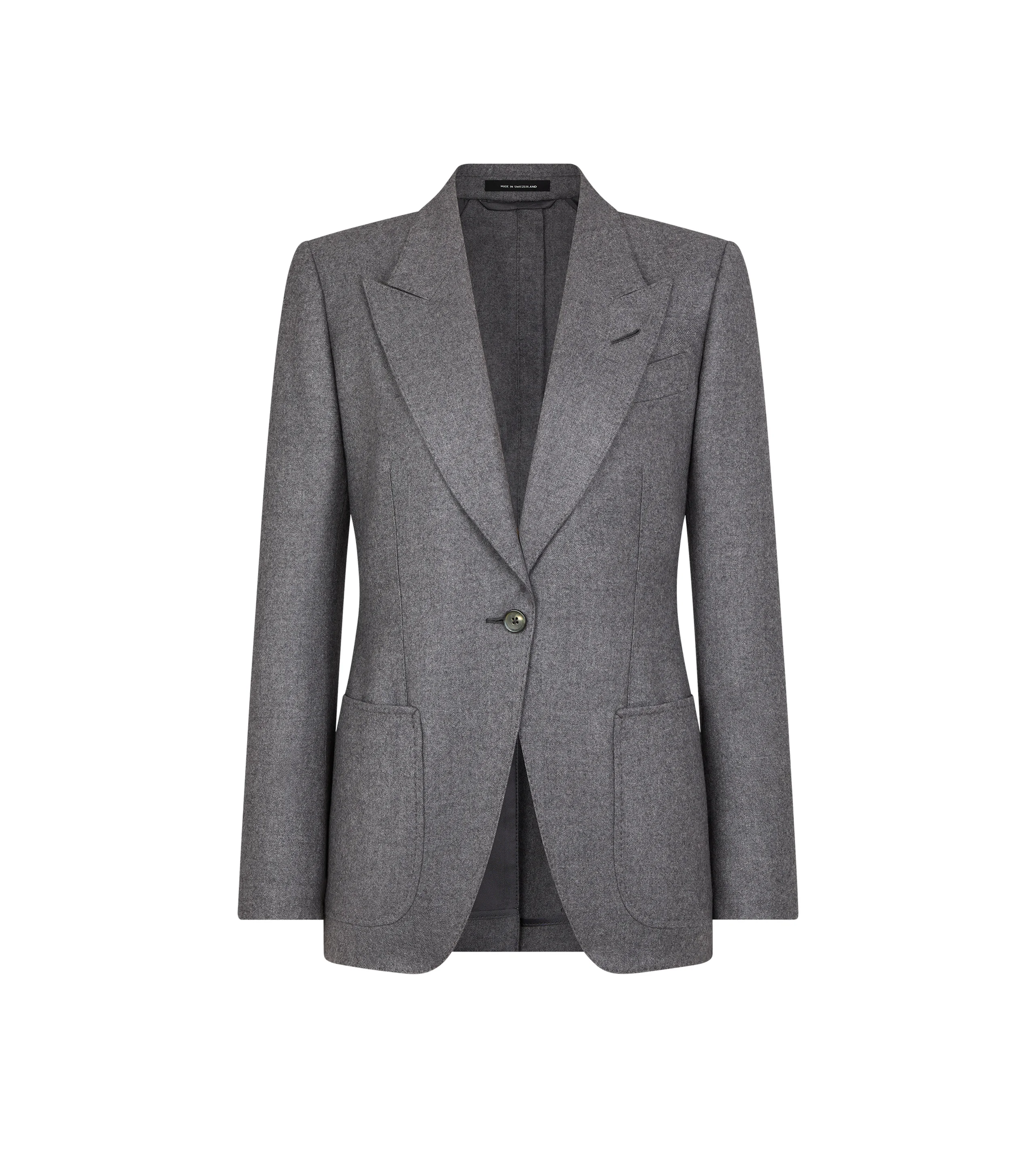 - SINGLE BREASTED JACKET - PEAK LAPEL - PATCH POCKETS - HAND-MADE CHEST POCKET - HAND-MADE LAPEL BUTTONHOLE - HAND-STITCHED SILK BAR TACKS ON CUFFS AND POCKETS - TOM FORD DESIGNS FEATURE A LONGER FIRST FINAL BUTTONHOLE ON CUFFS - 5 KISSING CUFF BUTTONS - SIGNATURE HORN BUTTONS - SINGLE VENT - AMF STITCHING DETAIL - UNLINED BODY - LINING ONLY FOR SLEEVES AND INTERNAL BINDING - FUSED - CRAFTED IN CASHMERE FLANEL - 100% CASHMERE