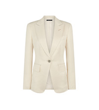 - SINGLE BREASTED PEAK LAPEL JACKET - BARCHETTA CHEST POCKET - HAND-MADE LAPEL BUTTONHOLE - FLAP POCKETS - 5 KISSING CUFF BUTTONS - TOM FORD DESIGNS FEATURE A LONGER FIRST FINAL BUTTONHOLE ON CUFF - WITH INTERNAL POCKETS - SINGLE VENT - MOTHER OF PEARL BUTTONS - AMF STITCHING - FULLY LINED - FULLY CANVASSED - CRAFTED IN SILK WOOL TWILL - 57% WOOL 43% SILK