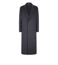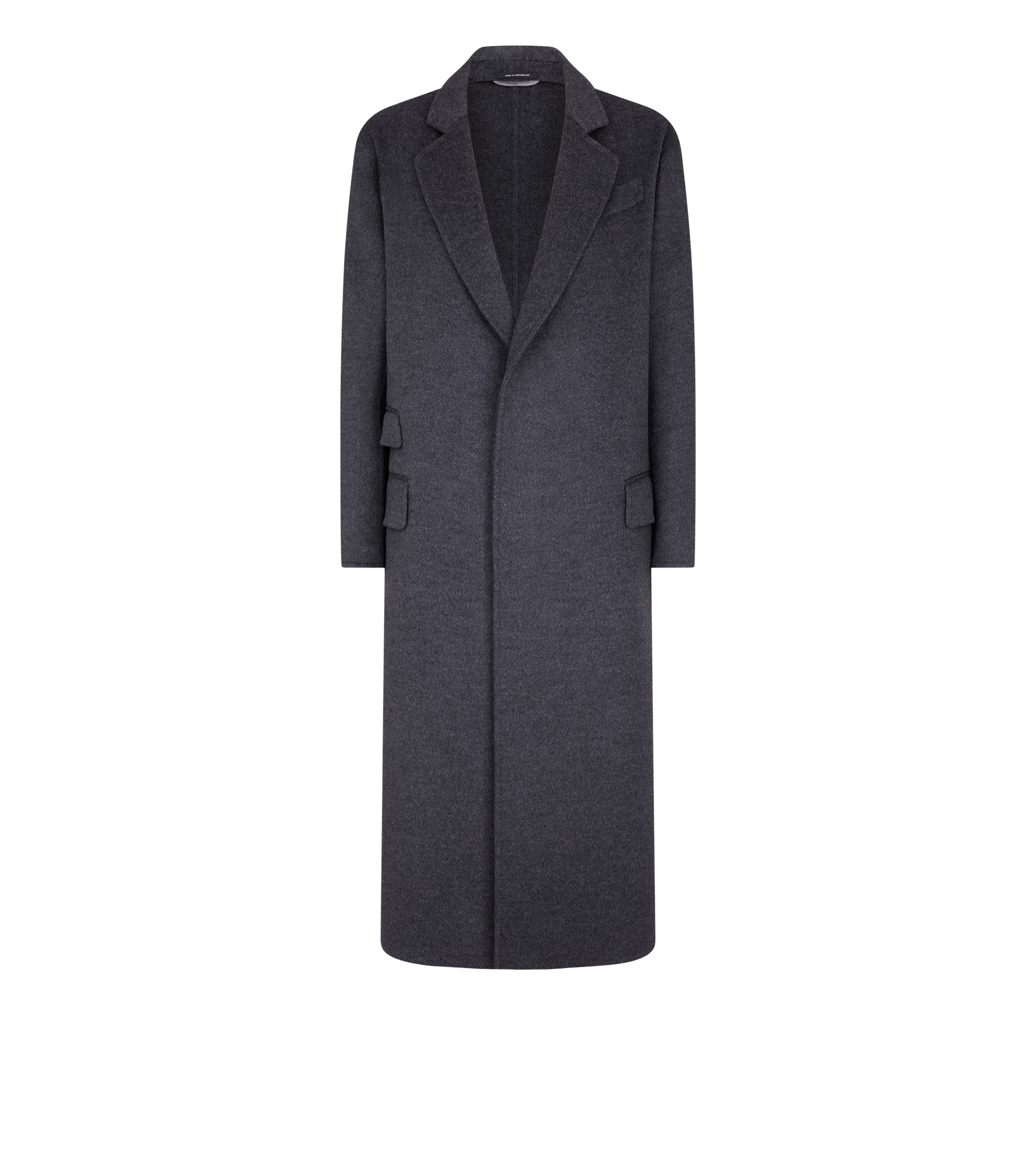 - SINGLE BREASTED COAT - HIDDEN BUTTON PLACKET - DOUBLE SPLITABLE COAT - DOUBLE SIDE SLIT - FLAP POCKETS - HAND-MADE CHEST POCKET - HAND-STITCHED SILK BAR TACK ALONG CUFFS AND POCKETS - 5 KISSING CUFF BUTTONS - SIGNATURE MOTHER OF PEARL BUTTONS - AMF STITCHING - SMOOTH LEATHER UNDERCOLLAR - TOM FORD SIGNATURE LEATHER GRAB HANDLE DETAIL - CRAFTED IN WOOL AND CASHMERE BLEND - 80% VIRGIN WOOL 20% CASHMERE
