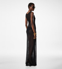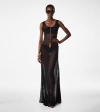 - SLEEVELESS SCOOP NECK DRESS - FLOOR LENGTH - CRAFTED IN VISCOSE OPENWORK LACE - GAUGE 14 - 98% VISCOSE 2% POLYESTER
