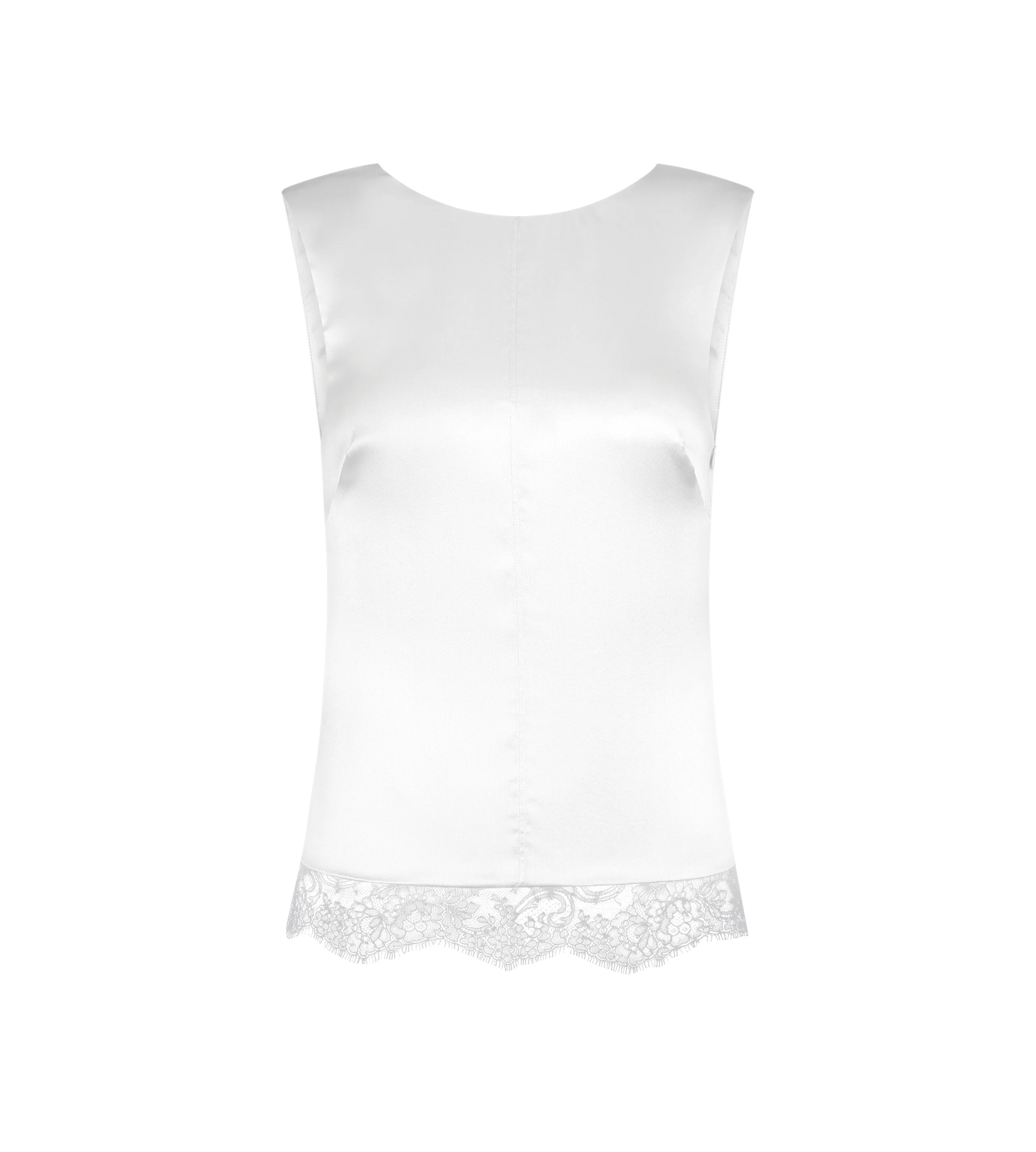 SLEEVELESS SILK TOP WITH V-BACK AND LACE INSERTS