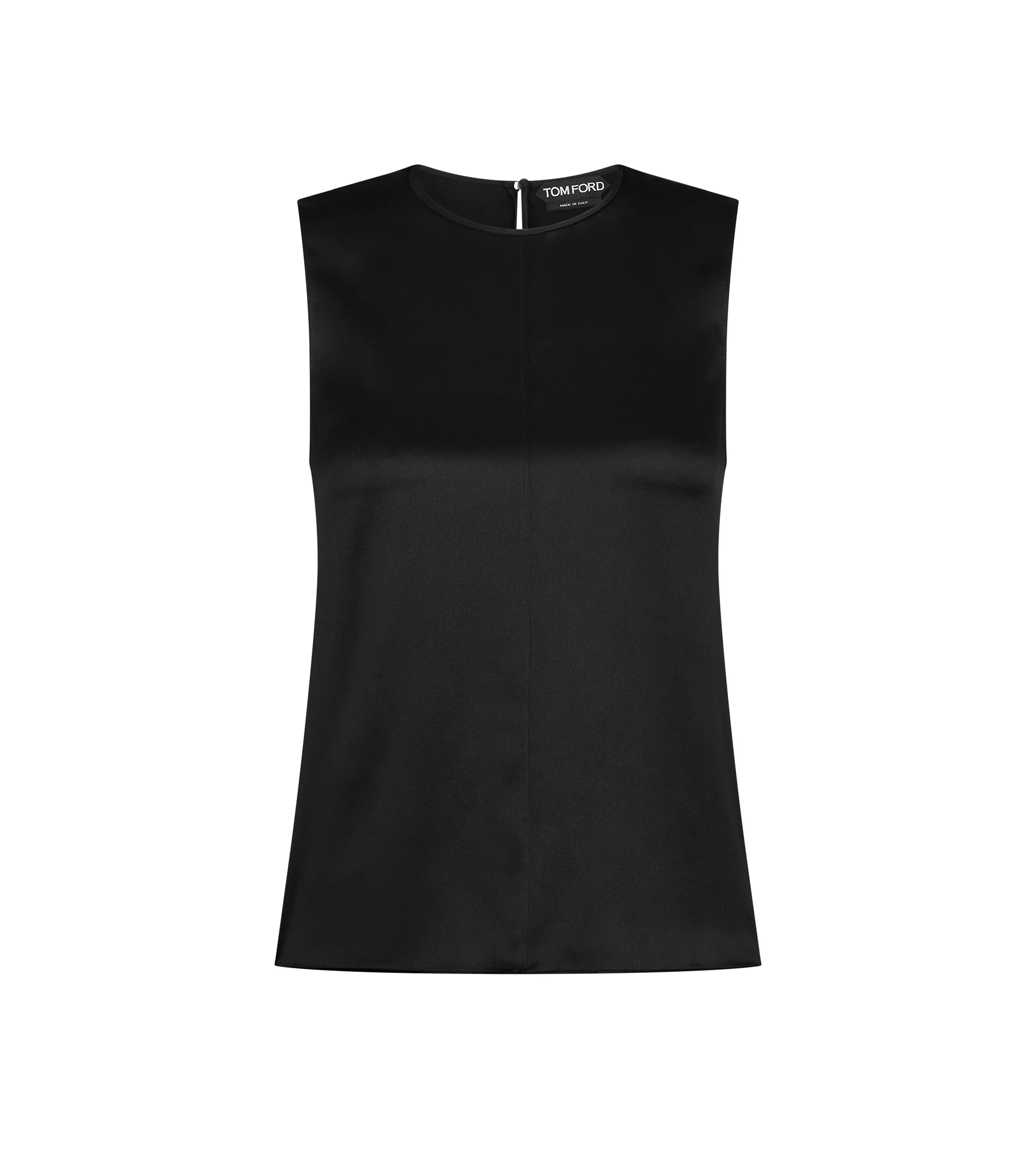 - SLEEVELESS FLUID FIT TOP - BACK DROP OPENING WITH BUTTON CLOSURE - MOTHER OF PEARL BUTTONS - CRAFTED IN FLUID CHARMEUSE SILK - 100% SILK