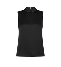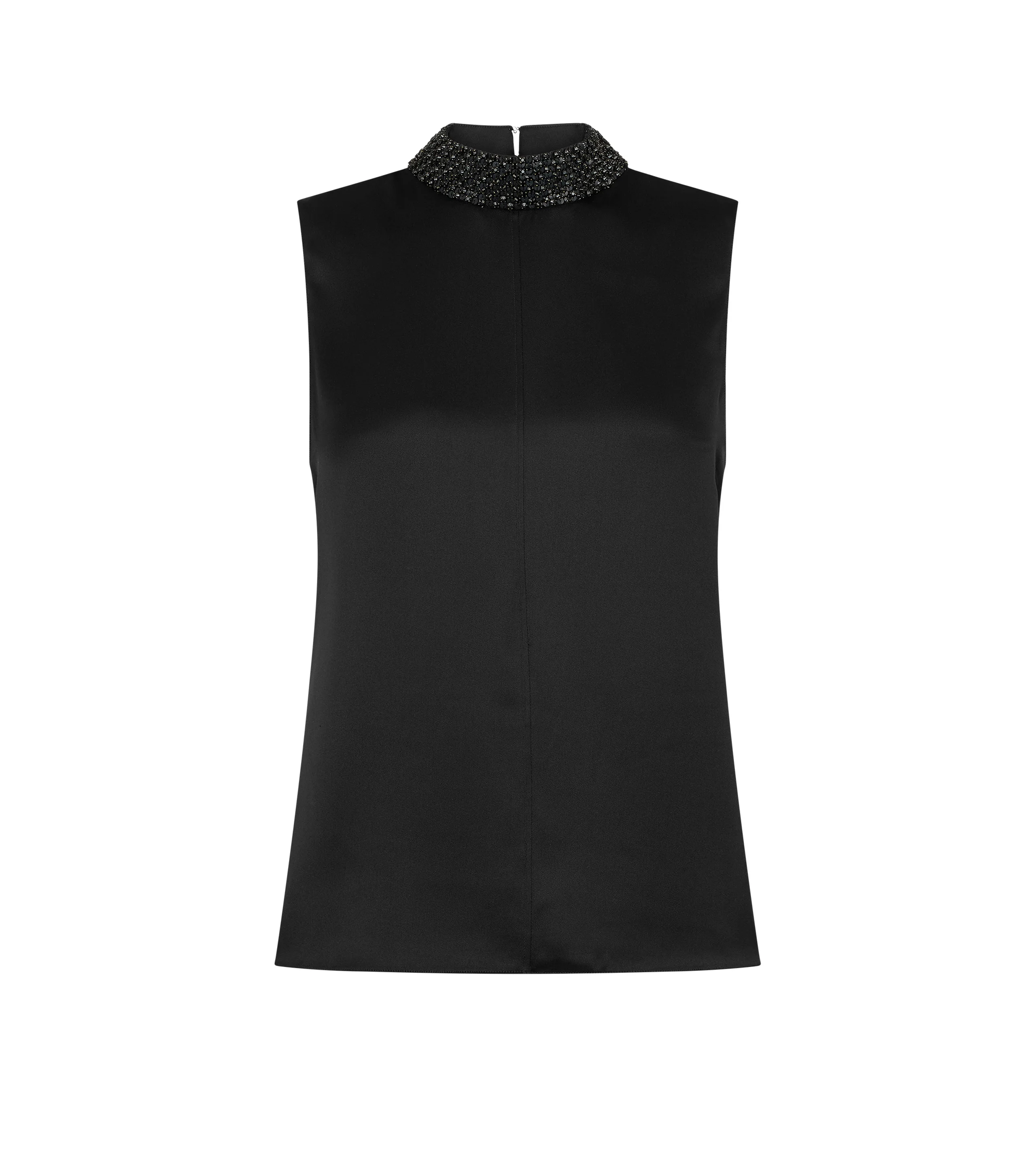 - SLEEVELESS TOP - BACK DROP OPENING WITH HOOK AND EYE FASTENING - EMBROIDERED NECK - CRAFTED IN SEQUINS AND STRASS EMBROIDERY ON FLUID DOUBLE SILK SATIN - 100% SILK - EMBROIDERY: 50% GLASS 50% POLYESTER - MADE IN ITALY