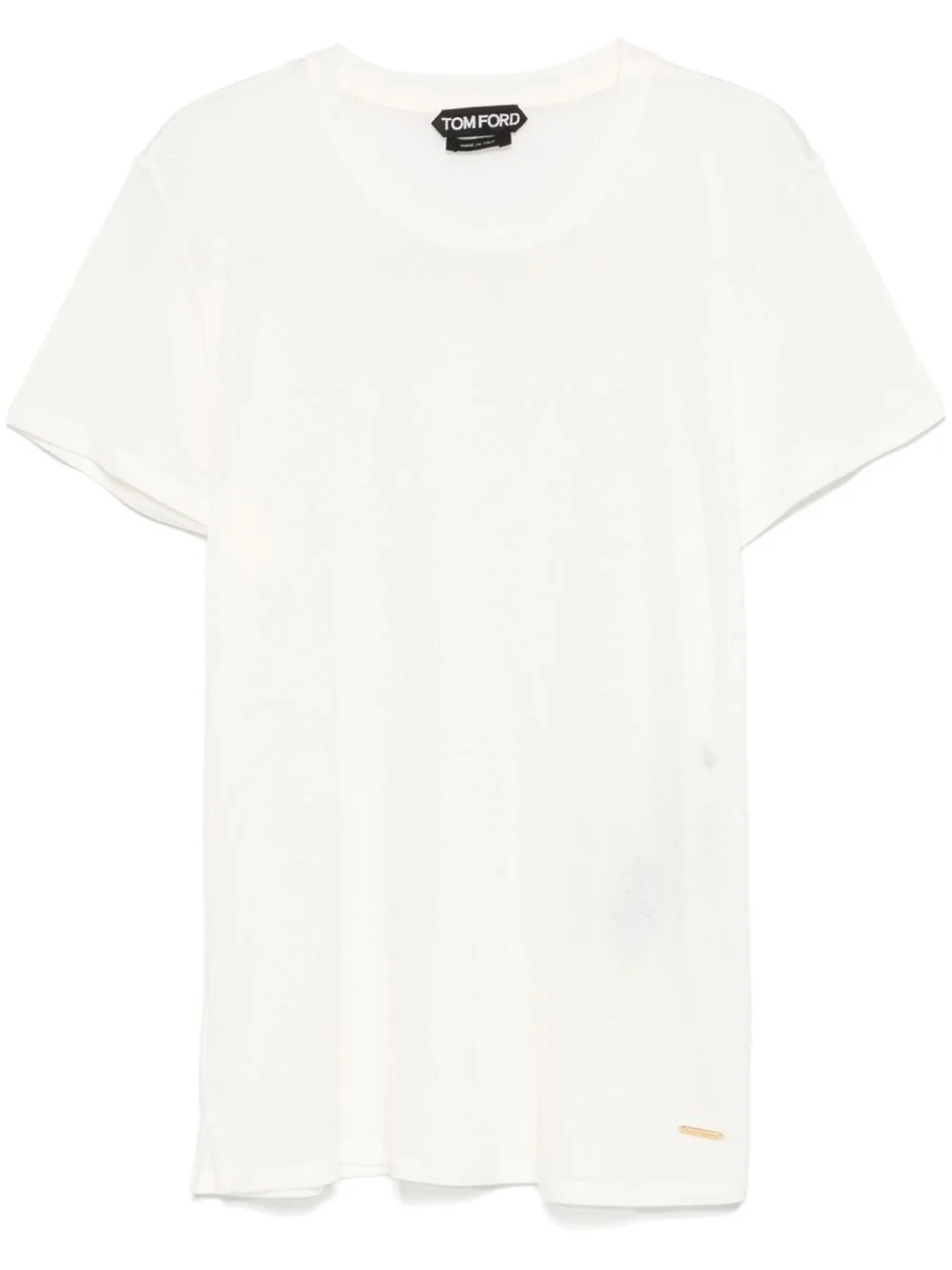 slub cotton T-shirt Highlights - White - Ribbed cuffs and hem - Gold-tone logo plaque - Crew neck Made in Italy Composition Bamboo 100% SIZE & FIT Model measurements Height 5 ft 10 in(1.79 m) Bust/Chest 31.88 in(81 cm) Hips 35.43 in(90 cm) Waist 23.62 in(60 cm) FittingInformation Designed for a relaxed fit, this piece allows for comfort and movement when worn Made with a lightweight knit, this piece offers some stretch