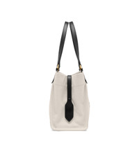 - TOM FORD MADE IN ITALY PRINTED LOGO - HAND, ELBOW AND SHOULDER CARRY - MAGNETIC CLOSURE - 1 COMPARTMENT - 2 INNER OPEN POCKETS - INNER LEATHER STRAP TO ADJUST THE SIZE; CAN BE WORN WIDE OR WITH CLOSED SIDES - LINING: COTTON - DIMENSIONS: 29 X 26 X 16 CM - HANDLES DROP: 22,5 CM - CANVAS 56% CO 44% LI - TRIM 100% CALFSKIN