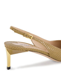 snake-embossed slingback pumps Highlights - Beige - Snake-embossed design - Pointed toe - Adjustable buckle fastening - Slim slingback strap - Stiletto heel - Metallic detailing on heel - Smooth interior Made in Italy Composition Sole: Calf Leather 100% Outer: Snake Print Leather 100% Lining: Calf Leather 100%