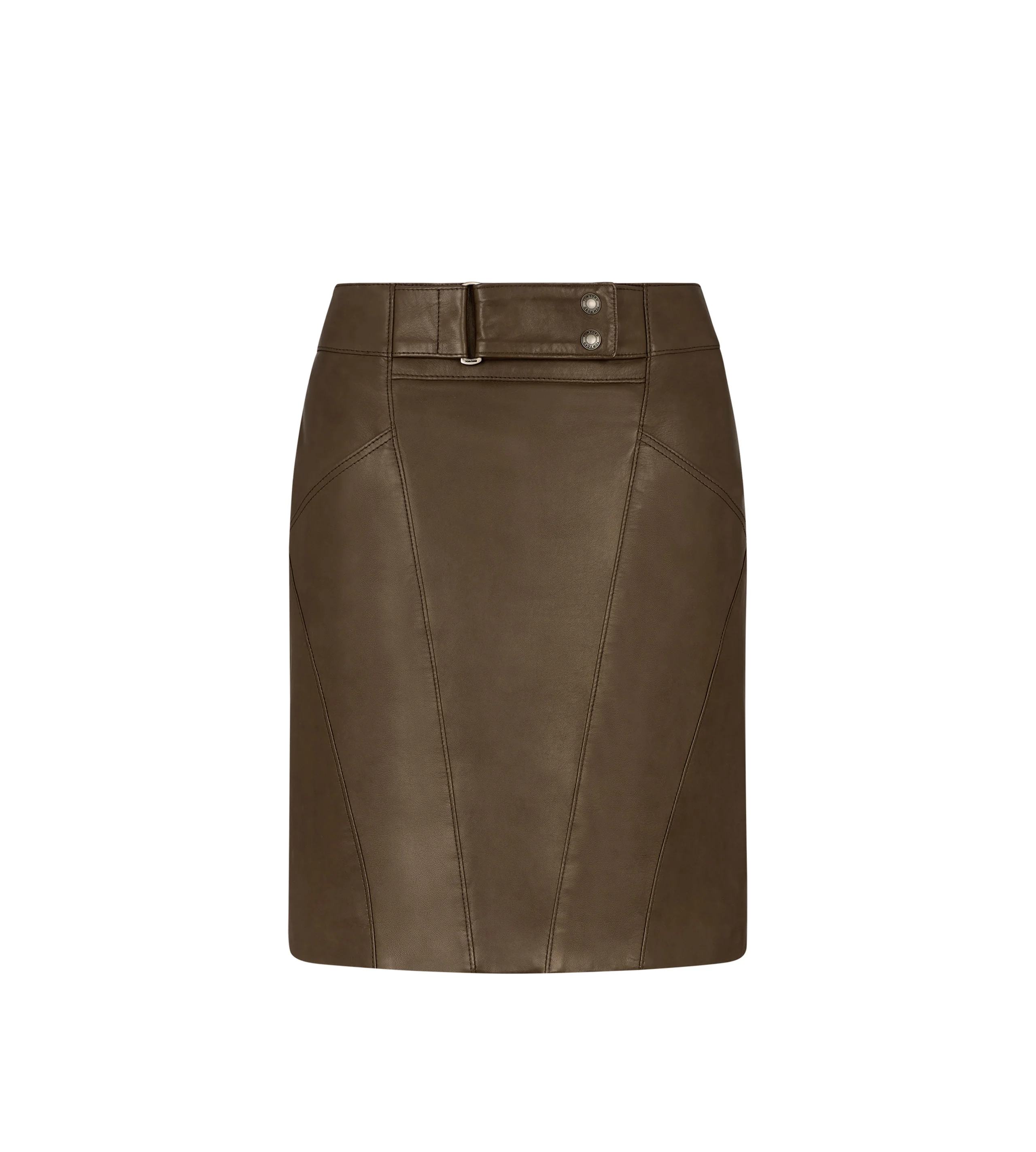 - ABOVE THE KNEE PENCIL SKIRT - BELT IN SELF WITH SIGNATURE METAL SLIDER AND SIGNATURE SNAP BUTTONS - BACK SIGNATURE ZIP CLOSURE - VINTAGE SILVER FINISH HARDWARE - FULLY LINED - CRAFTED IN SOFT NATURAL FINISH NAPPA