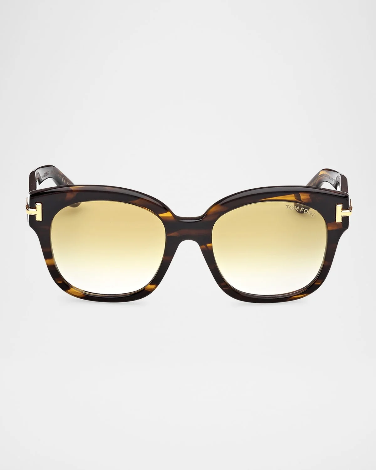 - The TOM FORD EYEWEAR ICON COLLECTION is the maximum expression of luxury. Inspired by personalities with charisma and presence, the collection shines the spotlight on unparalleled workmanship that elevates and enhances each element. Fine processing highlights these styles. Handcrafted Havana colorations and transparent acetate on the inner side of the temples with a new protective layer distinguish the tints of ICON sunglasses. The fine acetate frames are embellished with gold-tone metal inserts and engravings that create a surprisingly harmonious aesthetic. - Seductive thicknesses, volumes, and dimensions are characterized by 3D new logos with a shape that echoes the diamond’s baguette and becomes the new imprint of the brand. Each eye-catching frame with new high-quality ZEISS lenses transmits the strength, value, and personality of the brand through superb comfort, irresistible allure, and optimal vision. Designed to identify and inspire people who seek the true essence of elite style, the collection embodies the legendary quality and craftsmanship of TOM FORD EYEWEAR. - TOM FORD "Icon" square sunglasses in acetate - Lens/bridge/temple (in mm): 55-20-140 - Gradient lenses; logo on corner - Saddle nose bridge - Signature T hinges - Thin, tapered arms - 100% UVA/UVB protection - Made in Italy - Proposition 65 warning for California residents