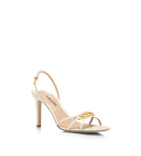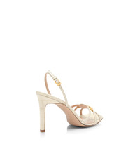 - SQUARE TOE SHAPE - 85 MM STILETTO HEEL - DECORATED WITH METAL WHITNEY T SHAPED SIGNATURE ON THE TOE - BUCKLE FASTENING SLINGBACK STRAP - LINING: NUDE LEATHER - INSOLE: NUDE LEATHER WITH BLACK HOT-STAMPED LOGO - SOLE: LEATHER - 100% GOATSKIN