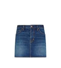 - DENIM MINI SKIRT - 5 POCKET STYLE - TOM FORD SIGNATURE TUCK BUTTON CLOSURE AND RIVETS - TOM FORD EMBOSSED ALCANTARA LABEL ON BACK POCKET - ANTIQUE SILVER AND COPPER HARDWARE - CRAFTED IN STONE WASHED DENIM - MADE IN USA - 100% COTTON ,