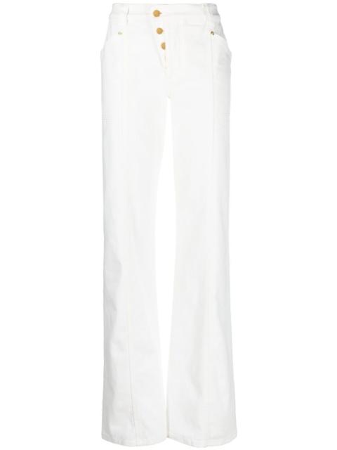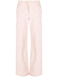 straight-leg cotton trousers These TOM FORD trousers are cut from pale pink cotton to a relaxed, straight-leg silhouette with an off-centre button fastening. Made in Italy Composition Outer: Cotton 97%, Elastane 3% Lining: Cotton 100% SIZE & FIT Model measurements Height 5 ft 10 in(1.79 m) Bust/Chest 31.1 in(79 cm) Hips 35.03 in(89 cm) Waist 24.01 in(61 cm) FittingInformation This piece fits true to size. We recommend you get your regular size Designed to be fitted at the waist and hips, loose over the leg Made with a mid-weight stretch fabric Washing instructions Machine Wash