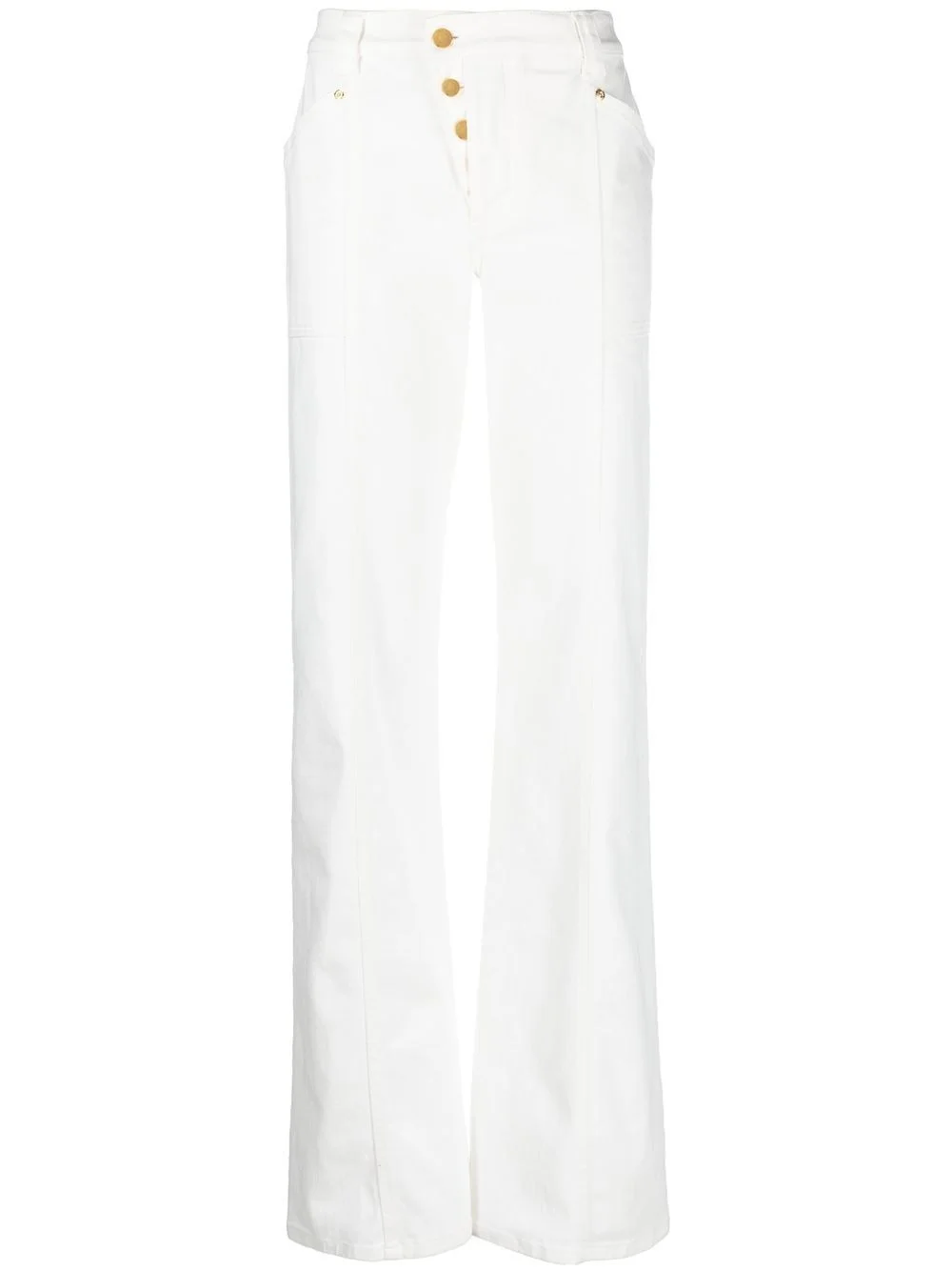 straight-leg trousers Arriving in a fresh white hue, these straight-leg trousers from TOM FORD are accented with a contemporary off-centre front button fastening. Made in Italy Composition Outer: Cotton 97%, Elastane 3% Lining: Cotton 100% SIZE & FIT Model measurements Height 5 ft 10 in(1.79 m) Bust/Chest 31.1 in(79 cm) Hips 35.03 in(89 cm) Waist 24.01 in(61 cm) FittingInformation This piece fits true to size. We recommend you get your regular size Designed to be fitted at the waist and hips, loose over the leg Made with a mid-weight stretch fabric Washing instructions Machine Wash