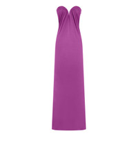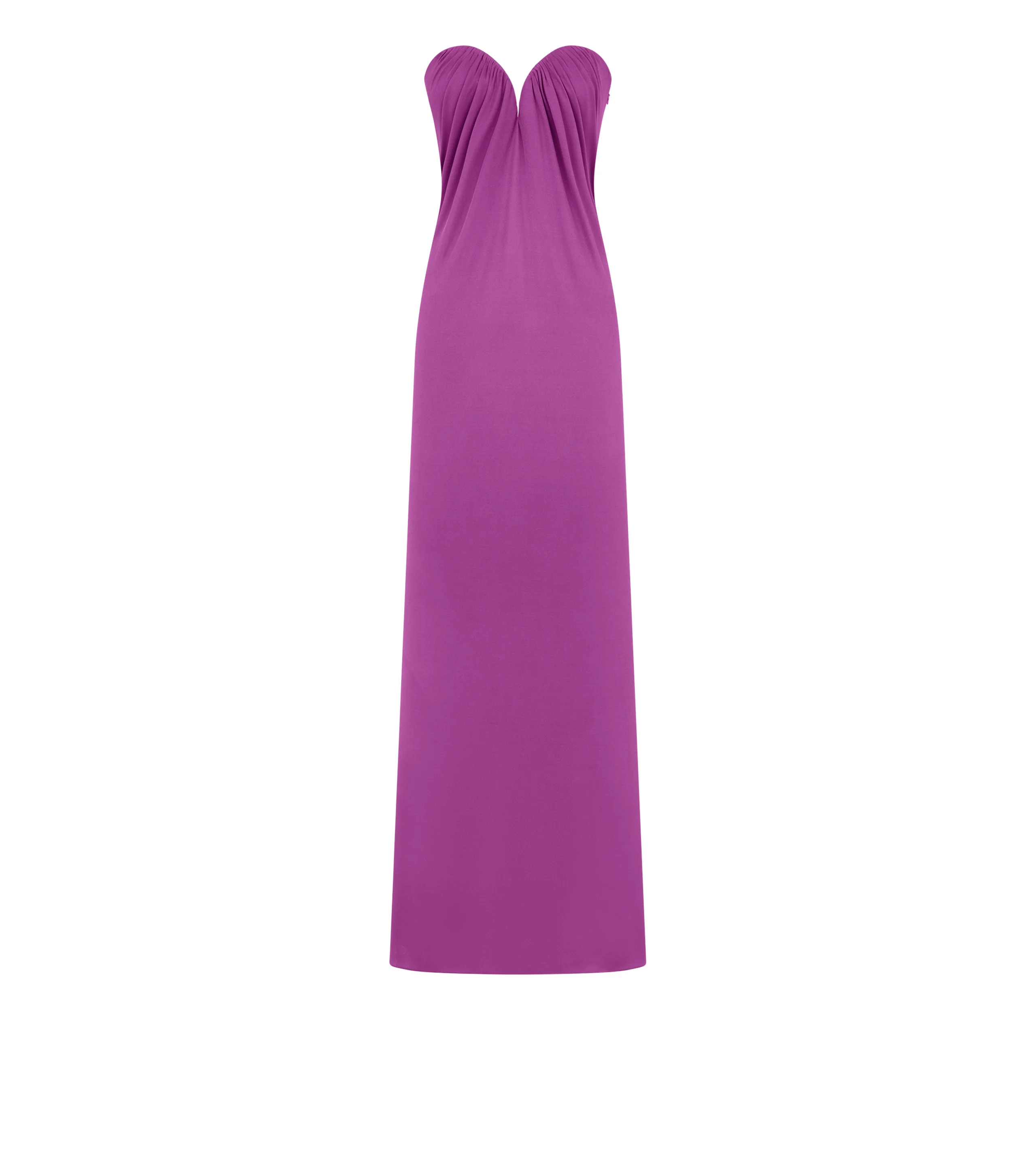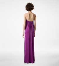 - STRAPLESS DRAPED EVENING DRESS - SWEETHEART NECKLINE - INTERNAL CORSET WITH MESH AND CUPS FOR SUPPORT - FRONT PANEL GATHERED AND HAND-APPLIED TO THE CORSET NECKLINE, CREATING FINE PLEATS SECURED WITH HIDDEN HAND STITCHES - FLOOR LENGTH - CRAFTED IN SOFT VISCOSE AND SILK JERSEY - 83% VISCOSE 17% SILK