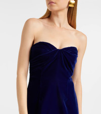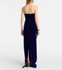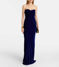 Crafted in Italy, this Tom Ford gown features a strapless style with padded cups and an internal corset. The design is finished with a long vent and a zipped back for closure. Product Details - Material: 67% viscose, 33% cupro - Care instructions: dry clean - Made in Italy - Designer color name: Indigo - Item color: blue - Lining: 81% polyamide, 19% elastane - Lining II: 94% silk, 6% elastane - Closure: zipped back - Padded cups - Underwired cups - Built-in bustier - Long vent - Unlined - Item number: P01053658 Size & Fit - True to size - Strapless - Internal corset with underwire support - Fitted - Non-stretchy fabric - Padded top - The model seen in the picture is 178cm-5'10" and wearing a size IT 38