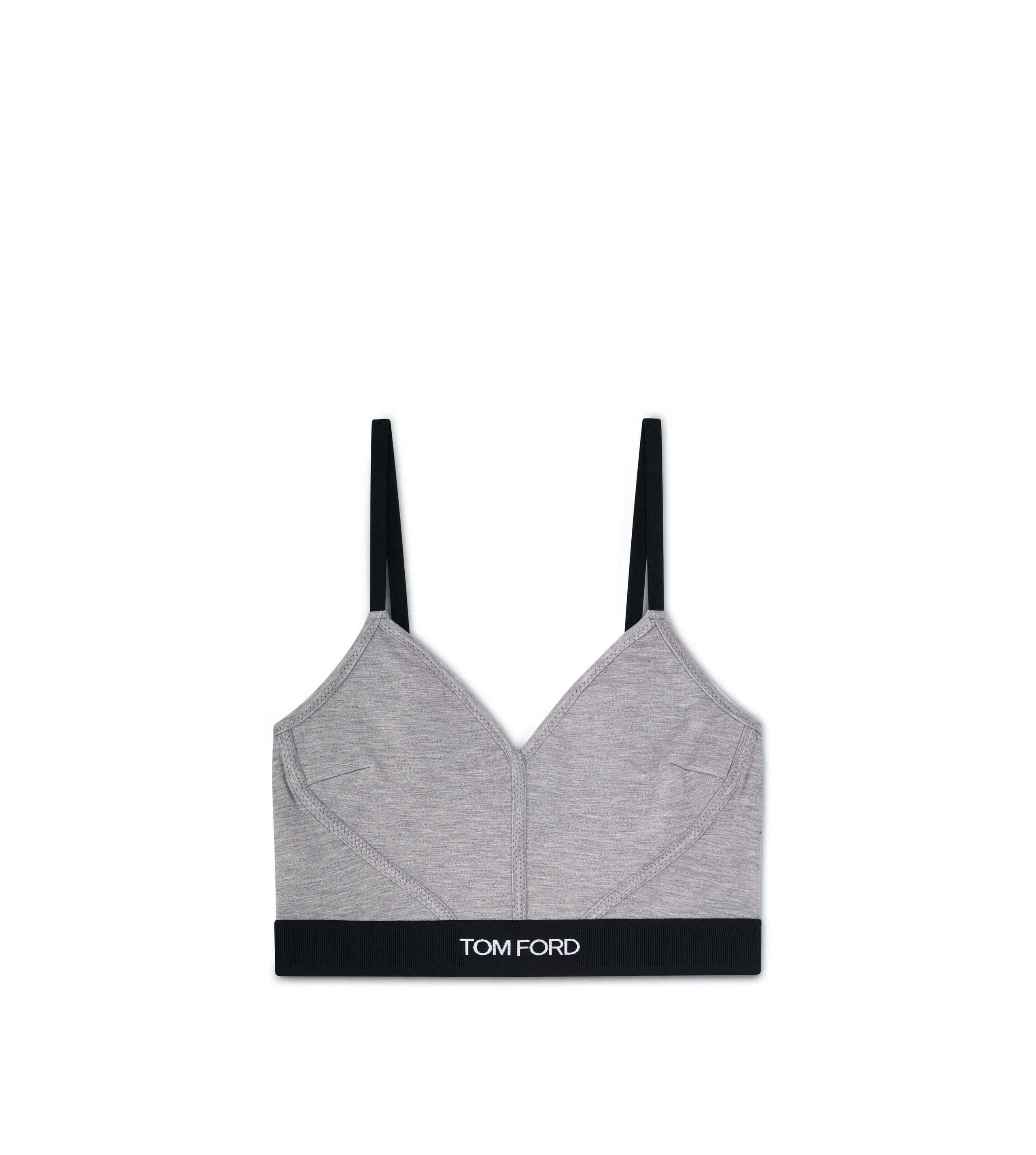 - STRETCH TOP - V-NECK - ZIG ZAG STITCHING DETAILINGS - ELASTICATED BAND WITH TOM FORD JACQUARD LABEL - ELASTIC ADJUSTABLE STRAPS - GOLD METAL HARDWARE - CRAFTED IN MODAL JERSEY - 97% MODAL 3% ELASTANE