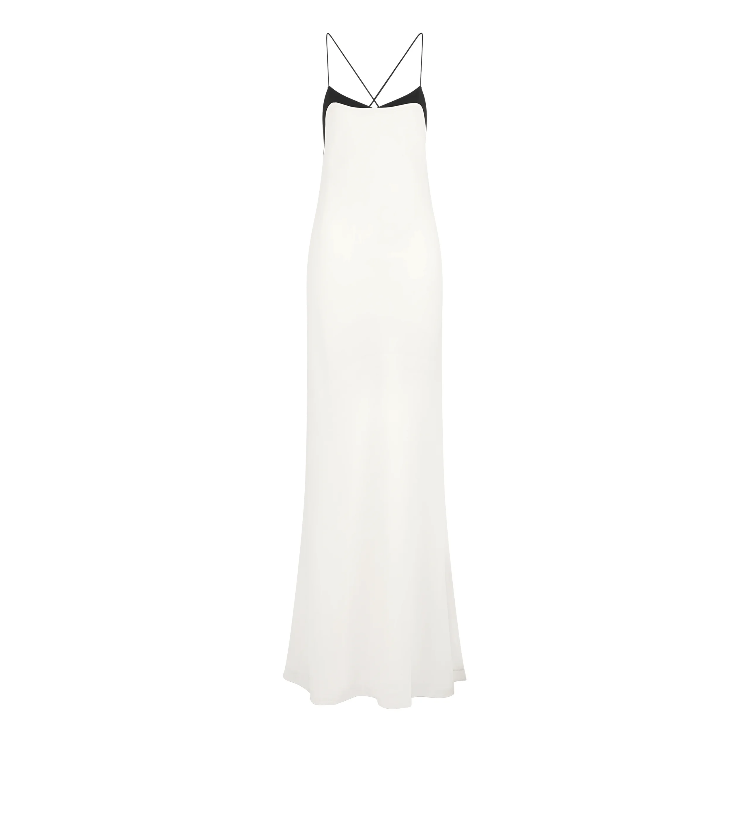 - CAMISOLE EVENING DRESS - BIAS - GEOMETRIC CONTRAST INTARSIA DETAIL AT THE TOP - CRISS-CROSS STRAPS AT THE BACK - FULLY LINED - CRAFTED IN DOUBLE GEORGETTE STRETCH - 94% SILK 6% ELASTANE - LINING: 100% SILK - MADE IN ITALY