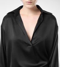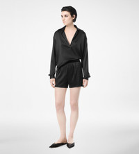- OPEN POLO WITH TONAL TF EMBROIDERED LOGO - LONG SLEEVE - REGULAR FIT - SELF COVERED BUTTONS AT THE CUFFS - CRAFTED IN STRETCH SILK SATIN - 94% SILK 6% ELASTANE - MADE IN ITALY