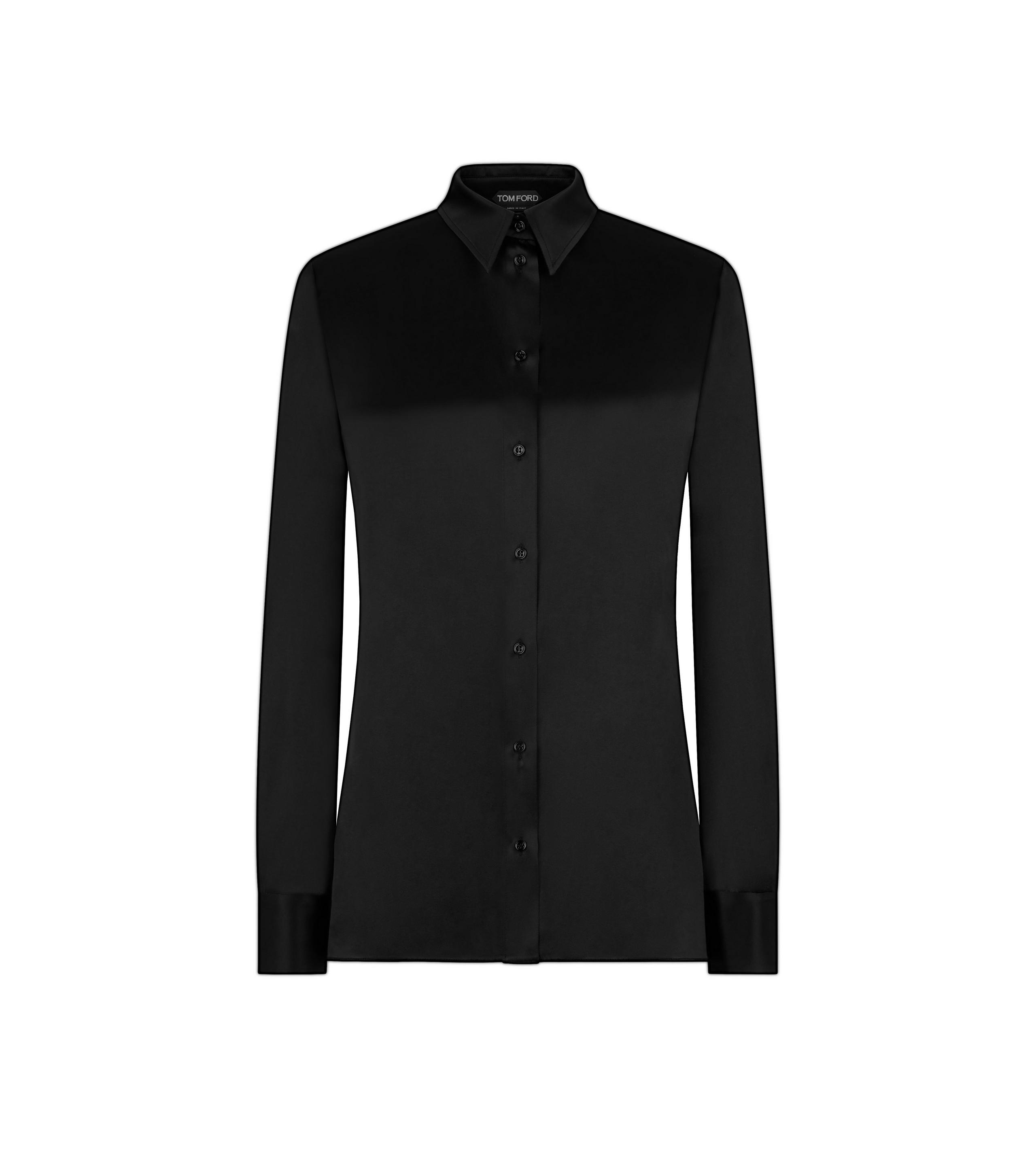 - CLASSIC FITTED SHIRT - BUTTON UP - SHIRT COLLAR - TONAL MOTHER OF PEARL BUTTONS ON FRONT PLACKET AND CUFFS - CRAFTED IN STRETCH SILK SATIN - 94% SILK 6% ELASTANE