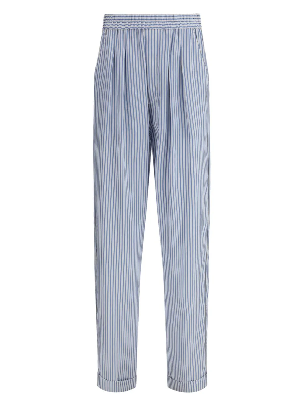 striped silk trousers Highlights - White and light blue - Striped pattern - Rear patch pockets - Elasticated waistband Made in Italy Composition Silk 100% Washing instructions Read Manufacturer Guidelines