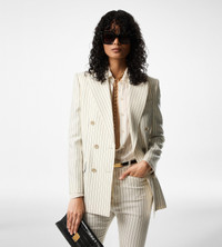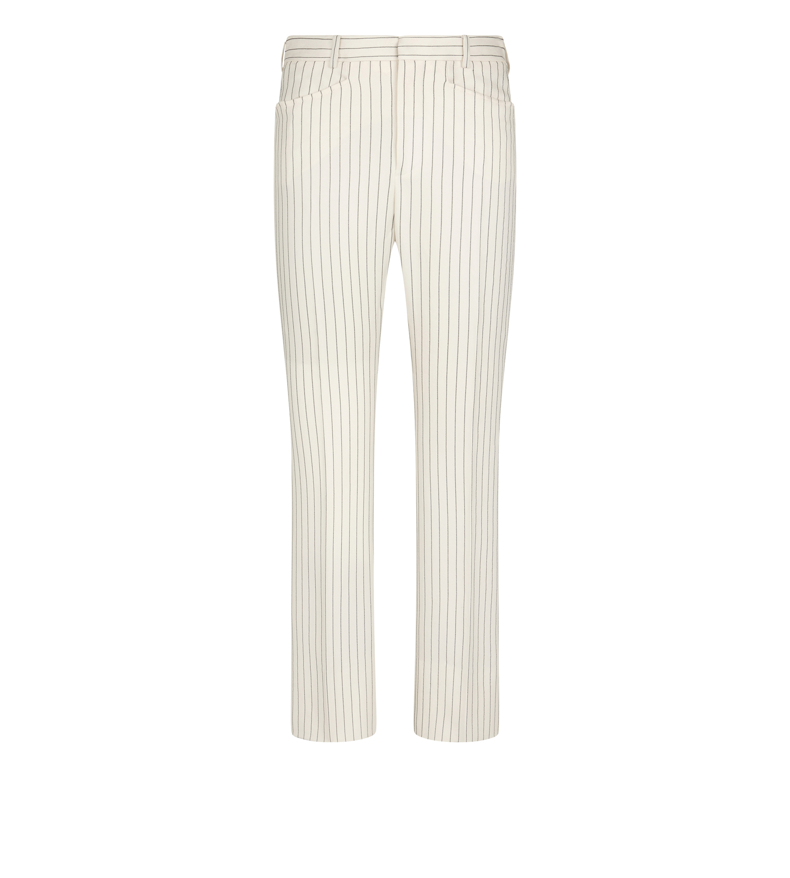 - ANKLE LENGTH TAILORED PANTS - SIGNATURE TAILORING CONSTRUCTION - LOOPED WAISTBAND WITH HOOK AND BAR CLOSURE - FRONT FROGMOUTH POCKETS - WELT POCKETS ON THE BACK - SIGNATURE TOM FORD HORN BUTTON - CRAFTED IN STRIPED WOOL AND SILK BLEND - 79% WOOL 17% SILK 4% POLYESTER