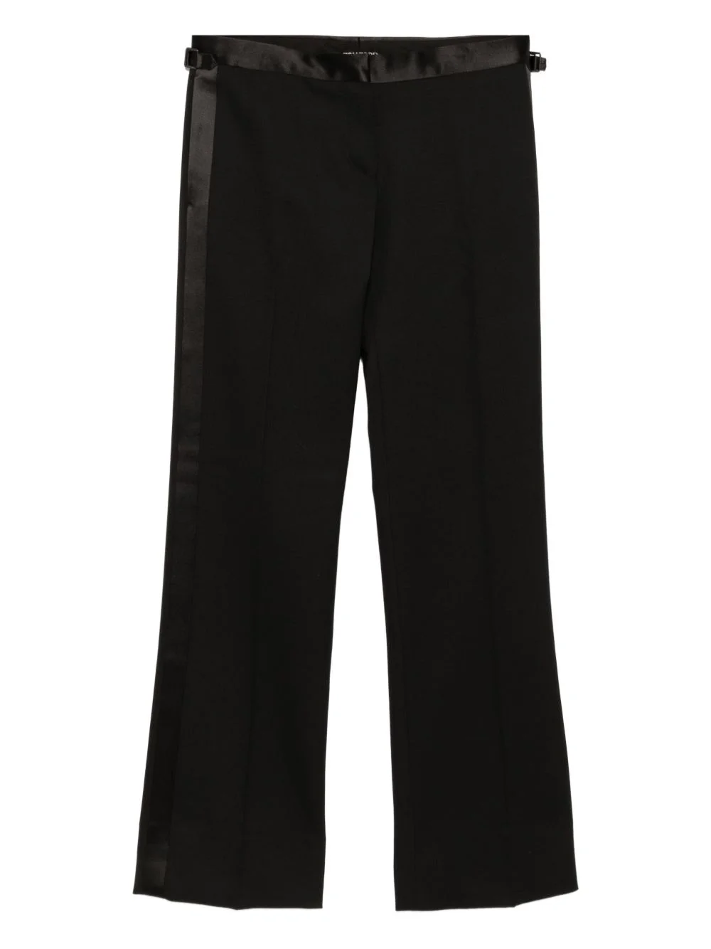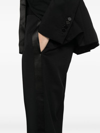 striped trousers Highlights - Black - Concealed front button, hook and zip fastening - Two side seam pockets - Two rear jetted pockets Imported Composition Virgin Wool 98%, Cupro 59%, Silk 41%, Elastane 2% SIZE & FIT Model measurements Height 5 ft 10 in(1.78 m) Bust/Chest 31.88 in(81 cm) Hips 37 in(94 cm) Waist 25.19 in(64 cm) FittingInformation Designed for a straight-leg fit, these trousers allow for a close fit at the waist and an unrestricted, comfortable fit over the leg The adjustable tabs allow for fitted preferences Made from a midweight stretch fabric, this piece offers elasticity and flexibility when worn Washing instructions Dry Clean Only