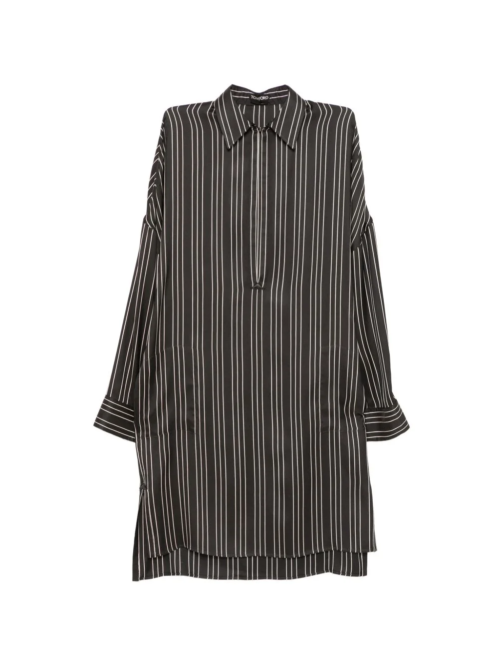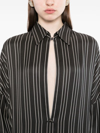 striped v-neck dress Highlights - Black - Striped pattern - High-low hem - Long sleeves - Side slits Made in Italy Composition Silk 100% Washing instructions Do Not Wash/Do Not Dry Clean