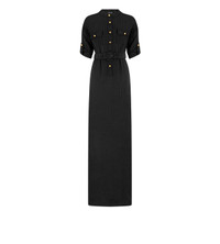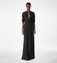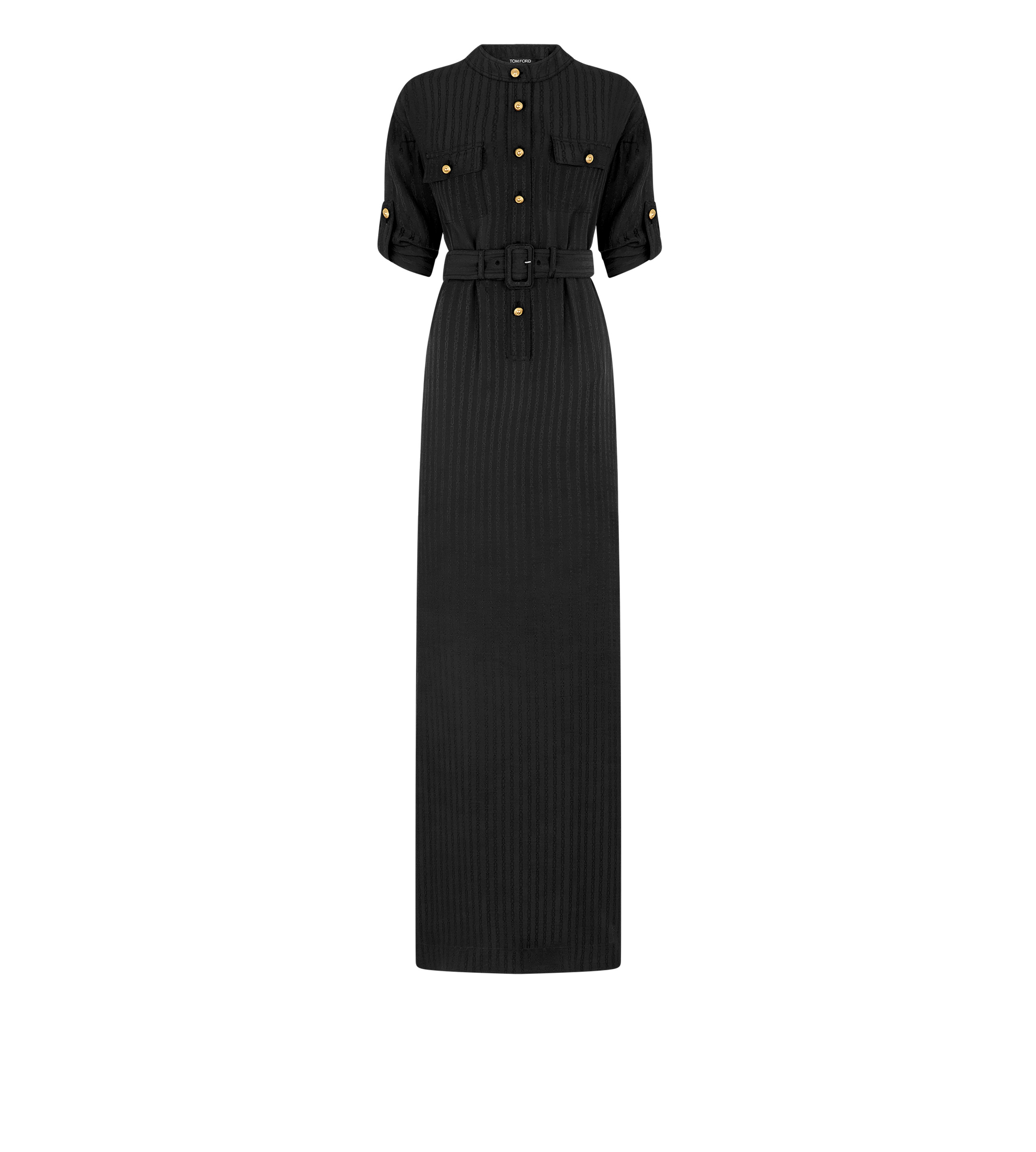 - BELTED LONG SHIRT DRESS - LONG SLEEVE WITH BUTTON TAB - PATCH FLAP CHEST POCKETS - BELT IN SELF WITH LINED BUCKLE FASTENING - AMBER VINTAGE GOLD METAL BUTTONS ALONG FRONT CLOSURE, POCKETS AND SLEEVE TABS - CRAFTED IN STRIPED WHITNEY FLUID SILK - 100% VISCOSE