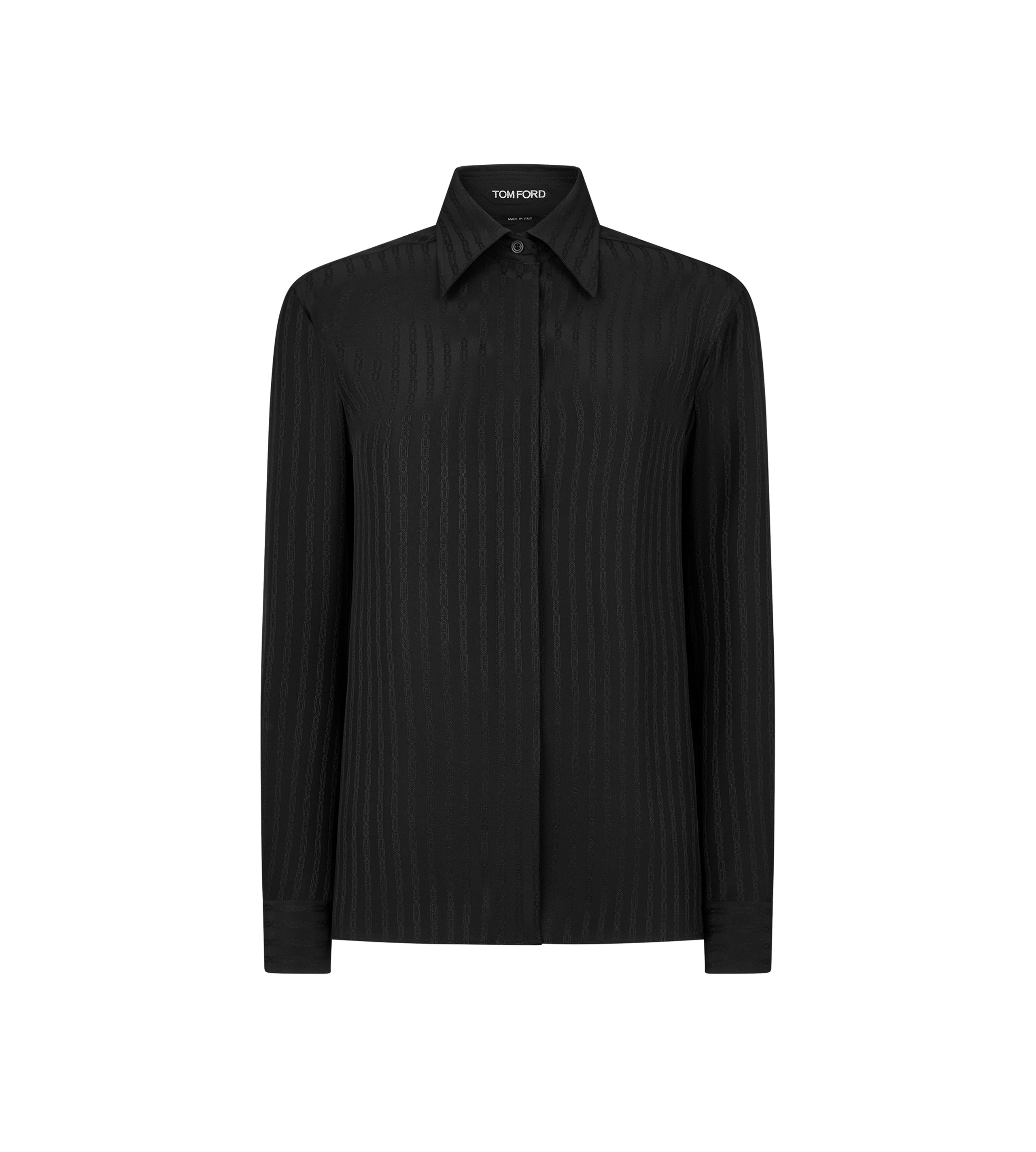 - CLASSIC FIT SHIRT - COVERED PLACKET - BARREL CUFF - MOTHER OF PEARL BUTTONS - CRAFTED IN STRIPED WHITNEY FLUID SILK - 100% VISCOSE