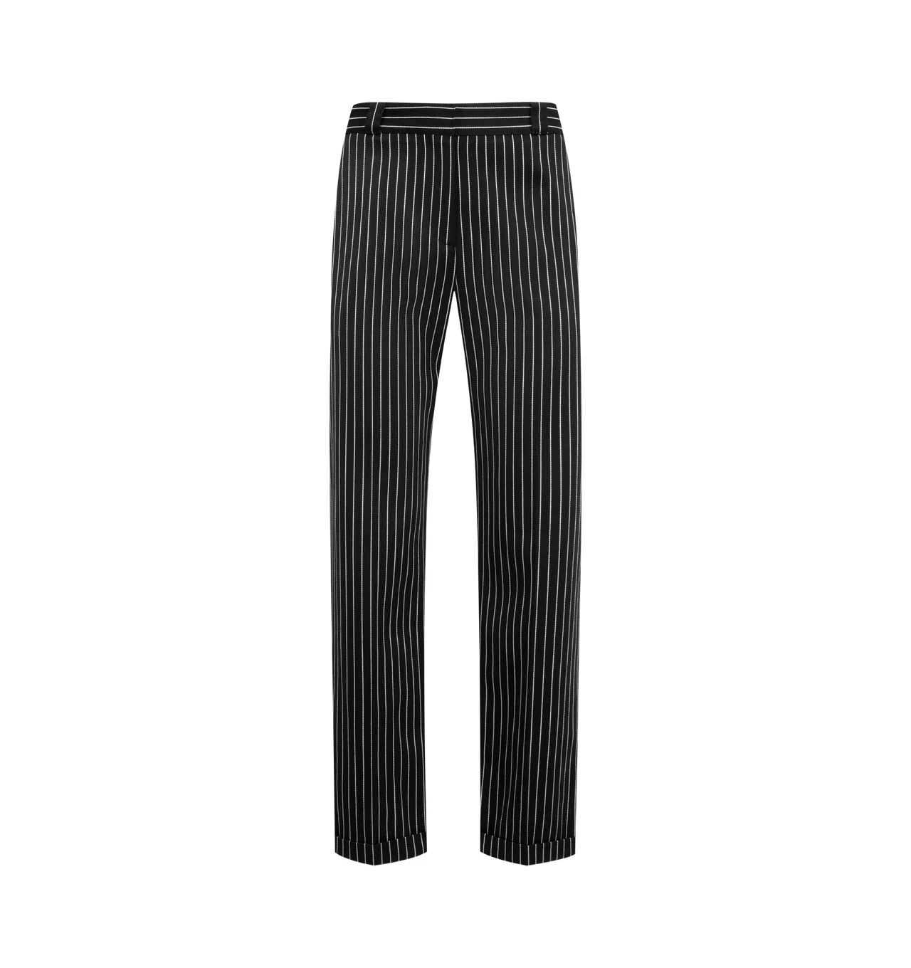 TOM FORD Striped Trousers featuring a concealed front button, hook and zip fastening, belt loops, stripes throughout, side slit pockets and two rear welt pockets. Wool, cotton. Made in Italy. DESIGNER STYLE ID: PAW679-FAX1693 COLOR: NWF BLACK/ECRU
