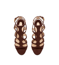 - ROUND TOE SHAPE - 105 MM STILETTO HEEL - BUCKLE FASTENING - INNER SIDE COVERED LEATHER ELASTICS - LINING: NUDE LEATHER - INSOLE: NUDE LEATHER WITH BLACK HOT-STAMPED LOGO - SOLE: LEATHER - 100% CALFSKIN - MADE IN ITALY