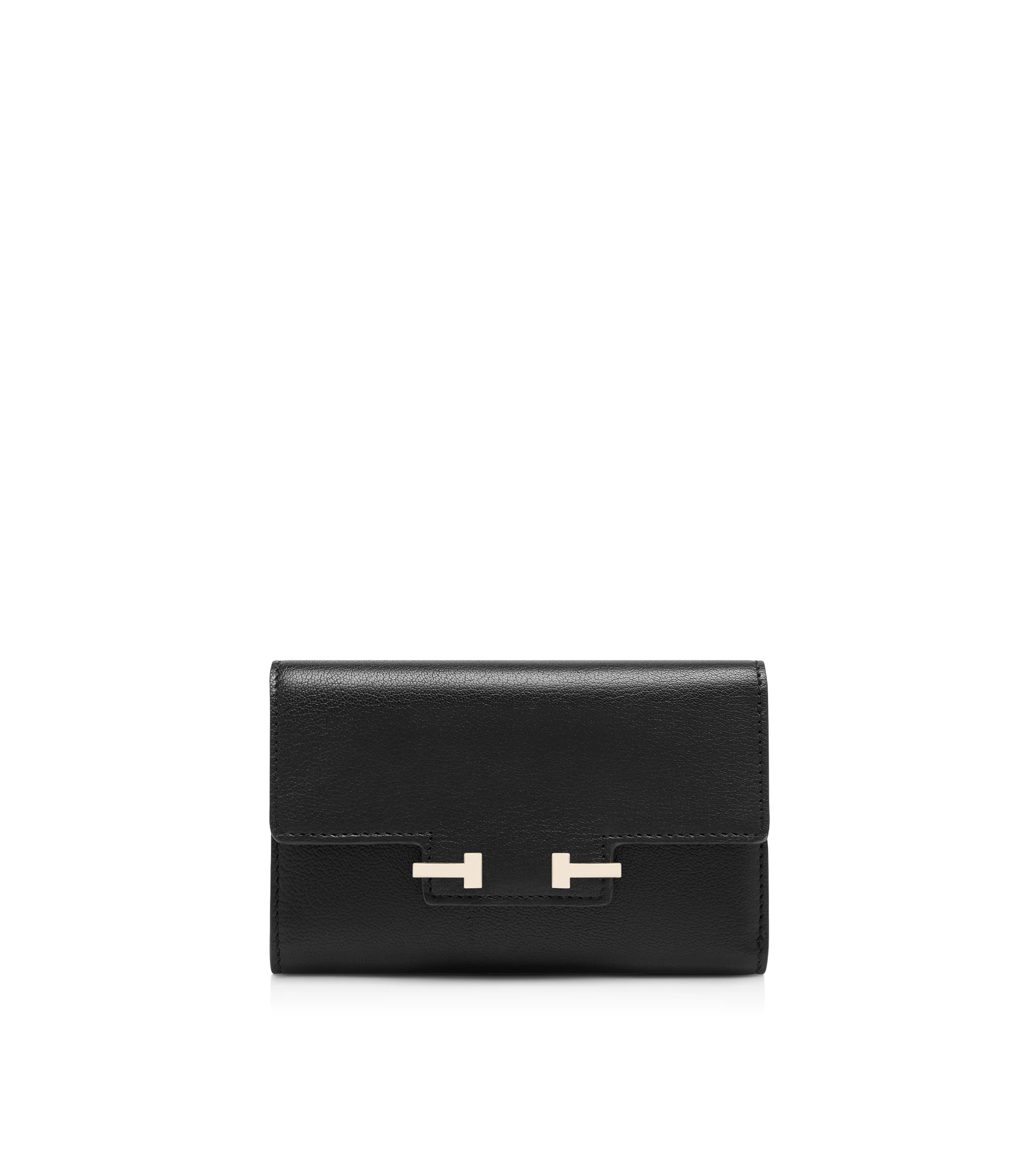 - SIGNATURE DOUBLE T SNAP BUTTON CLOSURE - ONE NOTE POCKET - TWO INNER FLAT POCKETS - ONE INNER ZIPPED POCKET - TEN CARD SLOTS - LINING: SUPPLE GRAIN LEATHER & VISCOSE - DIMENSIONS: 14,5 X 9,3 X 2 CM - 100 % GOATSKIN - MADE IN ITALY