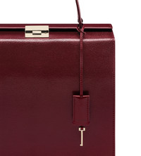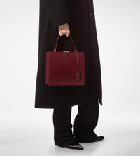 PRODUCT NO: L1901-LGO033P A modern reinterpretation of the classic top-handle bag, crafted with architectural precision. Logo-engraved closure with functional key fastening and embossed key bell highlight discreet luxury, while interior compartments and nappa lining ensure timeless practicality. Composition: 100% goatskin, lining: nappa leather Dimension: 26x22x7 cm Made in Italy.