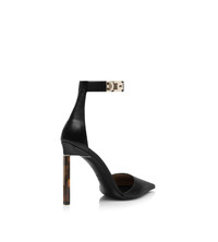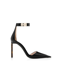 PRODUCT NO: W3783-LGO033P A striking pump defined by the new T Latch signature in pale gold, balancing sculptural elegance with modern sensuality. The 105 mm tortoiseshell-effect stiletto heel enhances posture with confident allure.For an ideal fit, we advise choosing TOM FORD Women’s shoes in half a size larger than your standard size, as they tend to run slightly small. Composition: 100% goatskin, lining: nude leather, insole: black leather with screen-printed logo, sole: black leather with rubber tap detail Made in Italy.