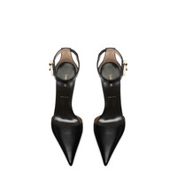 SUPPLE GRAIN LEATHER T LATCH ANKLE STRAP PUMP