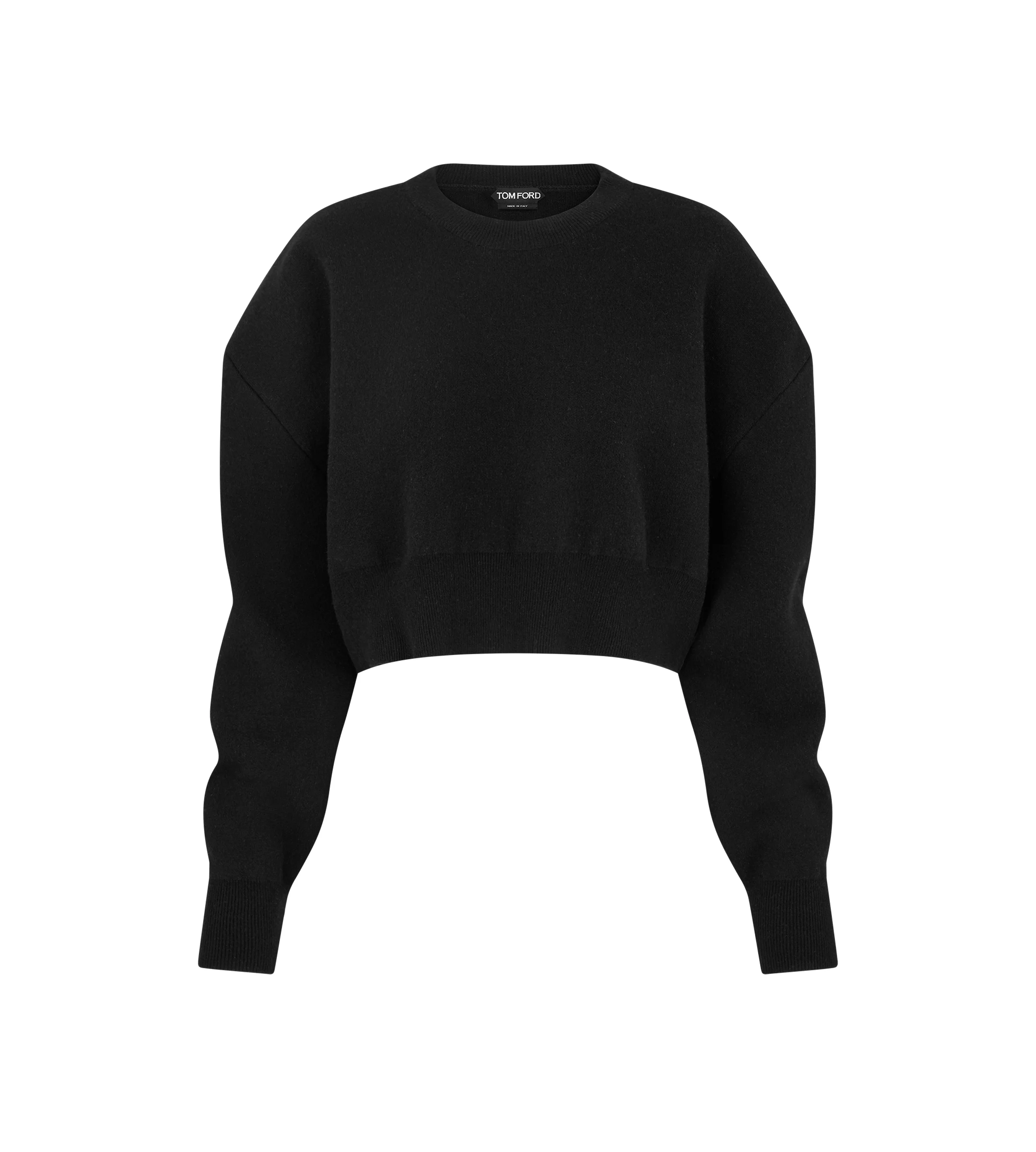 - COUTURE SLEEVE SWEATSHIRT - CREWNECK - CROPPED DOUBLE KNIT - RIBBED COLLAR, CUFFS AND HEM - CRAFTED IN SCULPTURAL DOUBLE FACE WOOL CASHMERE - 66% VIRGIN WOOL 28% CASHMERE 5% POLYAMIDE 1% ELASTANE