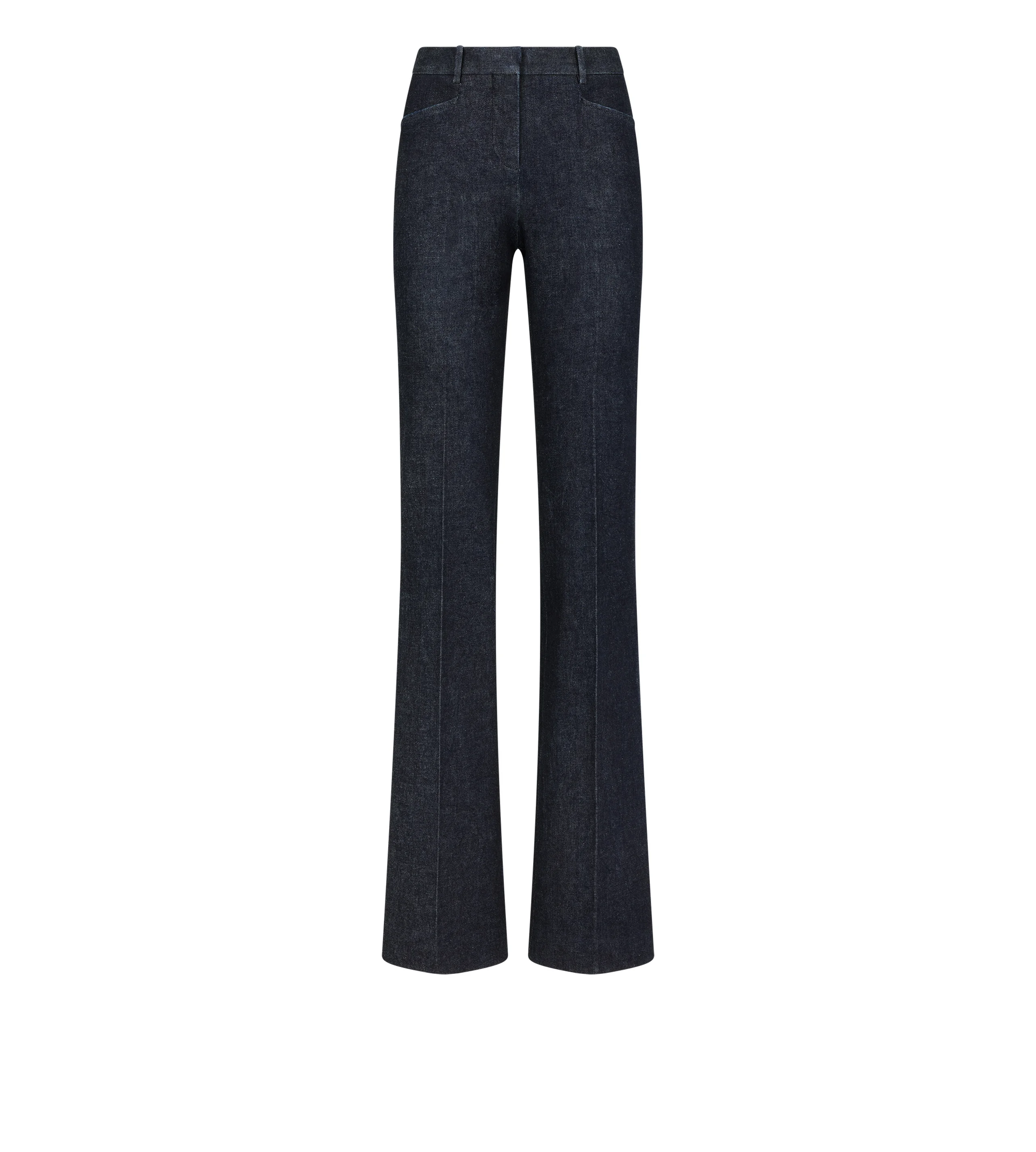 - TAILORED FLARE PANTS - FRONT FROGMOUTH POCKETS - WELT POCKETS ON THE BACK - INTERNAL COTTON WAISTBAND - HOOK AND BAR CLOSURE - CRAFTED IN STRETCH DENIM - 98% COTTON 2% ELASTANE