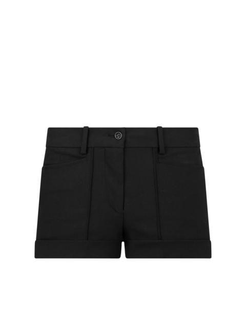 - ROLLED-UP HEM TAILORED MINI SHORTS - SIGNATURE TAILORING CONSTRUCTION - LOOPED WAISTBAND WITH HOOK AND BAR CLOSURE - FROGMOUTH FRONT POCKETS , - JET POCKET ON THE BACK - MOTHER OF PEARL BUTTONS - FULLY LINED - CRAFTED IN STRETCH COTTON TRICOTINE - 97% COTTON 3% ELASTANE