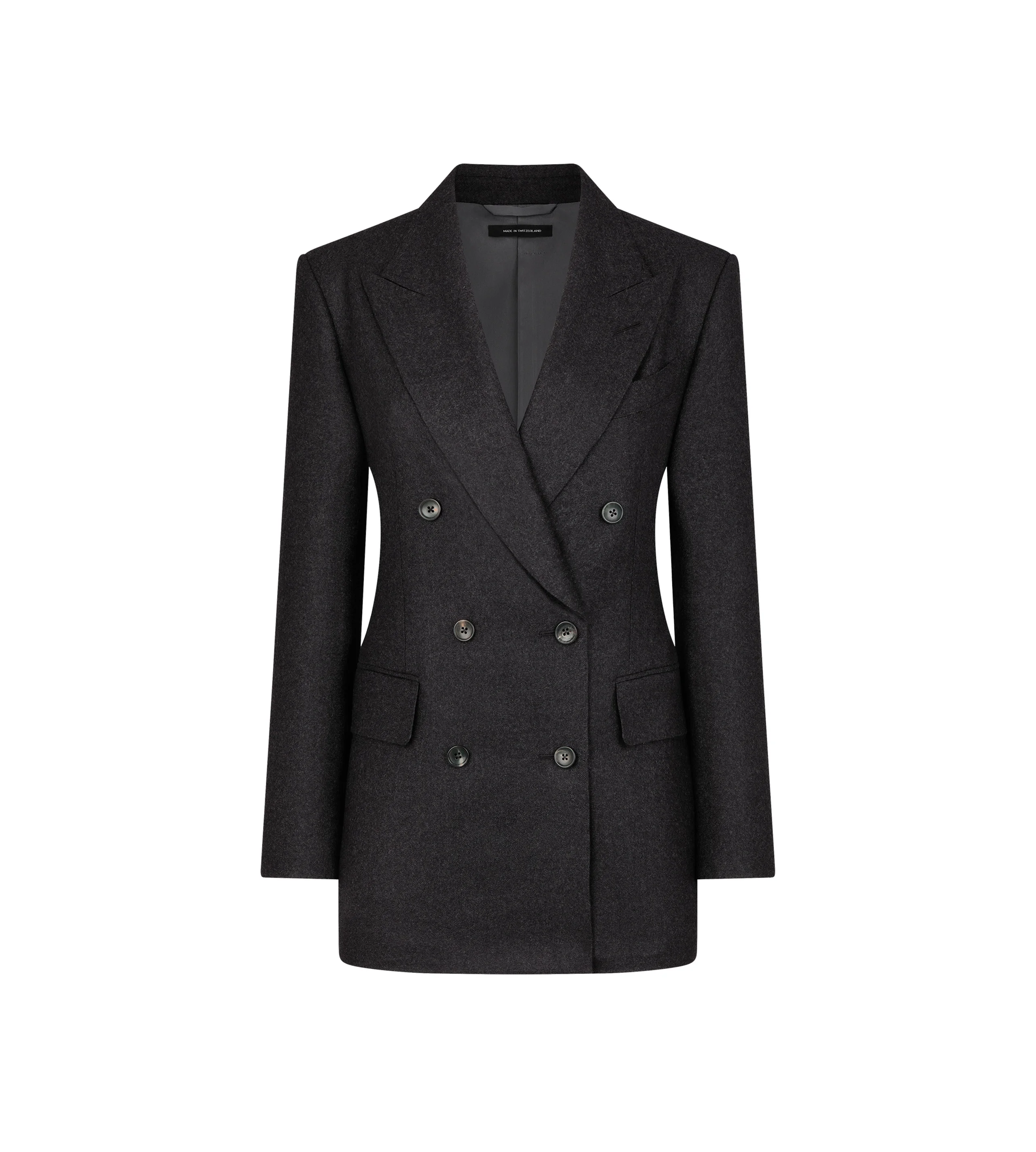 - DOUBLE BREASTED JACKET - PEAK LAPEL - FLAP POCKETS - HAND-MADE BARCHETTA CHEST POCKET - HAND-MADE LAPEL BUTTONHOLE - 5 KISSING CUFF BUTTONS - TOM FORD DESIGNS FEATURE A LONGER FIRST FINAL BUTTONHOLE ON CUFFS - WITH INTERNAL POCKETS - AMF STITCHING DETAIL - SINGLE VENT - HAND-STITCHED SILK BAR TACKS ON CUFFS AND POCKETS - SIGNATURE MOTHER OF PEARL BUTTONS - FUSED - FULLY LINED - CRAFTED IN TAILORING CASHMERE - 100% CASHMERE