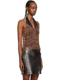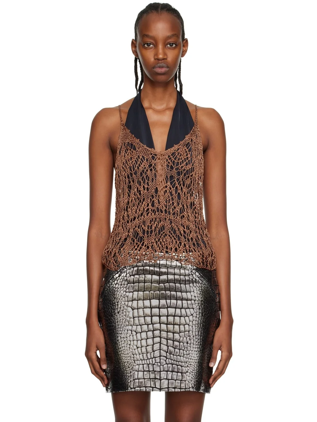 Open knit 3-gauge acetate tank top. · Scoop neck · Fixed shoulder straps Supplier color: Tan 100% acetate. Made in Italy 231076F111011