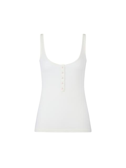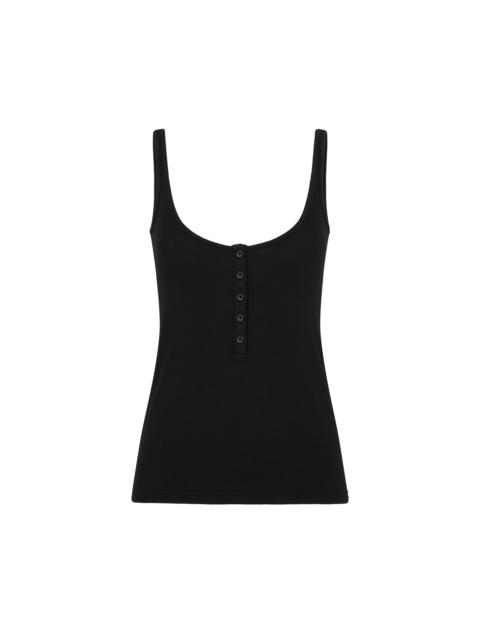 - FITTED TANK TOP - DEEP ROUND NECK ON FRONT AND BACK - MOTHER OF PEARL BUTTONS ON FRONT PLACKET - CRAFTED IN COTTON RIB JERSEY - 85% COTTON 15% SILK