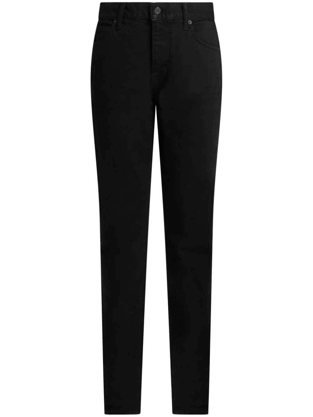tapered jeans Highlights - Black - Cotton - Denim - Front button and zip fastening - Belt loops - Classic five pockets - Logo patch to the rear - Straight leg Made in Italy Composition Lining: Cotton 100% Outer: Cotton 99%, Polyester 68%, Polyurethane 32%, Spandex/Elastane 1%