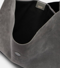 The Tara Large crossbody bag is a spacious top-handle or crossbody carry that is crafted in Italy from supple suede. Tom Ford's dynamic play with proportions and elegance comes through in this thoughtful design with removable straps. Product Details - Material: calf leather (suede) - Lining: fabric - Made in Italy - Designer color name: Grey - Item color: gray - Hardware color: gold - Closure: magnetic fastening - Detachable, adjustable shoulder strap, Adjustable top handle - Internal details: two internal compartments, internal zipped pocket - Includes: dust bag - Item number: P01084404 Size & Fit - Height 32,5cm-13" - Width 39cm-15.5" - Depth 7cm-3" - Length of handles 52/58cm-20.5/23" - Adjustable shoulder strap - Min. length shoulder strap 64cm-25" - Max. length shoulder strap 67cm-26.5"