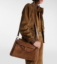 The Tara Medium shoulder bag is a spacious top-handle carry that comes crafted in Italy from supple suede. Tom Ford's dynamic play with proportions and elegance comes through in this thoughtful design with removable straps. Product Details - Material: calf leather - Lining: fabric - Made in Italy - Designer color name: Whisky - Item color: beige - Hardware color: gold - Internal details: three internal compartments - Closure: magnetic fastening - Detachable top handle, Detachable, adjustable shoulder strap - Item number: P01038690 Size & Fit - Height 24cm-9.5" - Max. width 36cm-14" - Depth 12cm-4.5" - Length of handle 52cm-20.5" - Min. length shoulder strap 98cm-38.5" - Max. length shoulder strap 116cm-45.5"