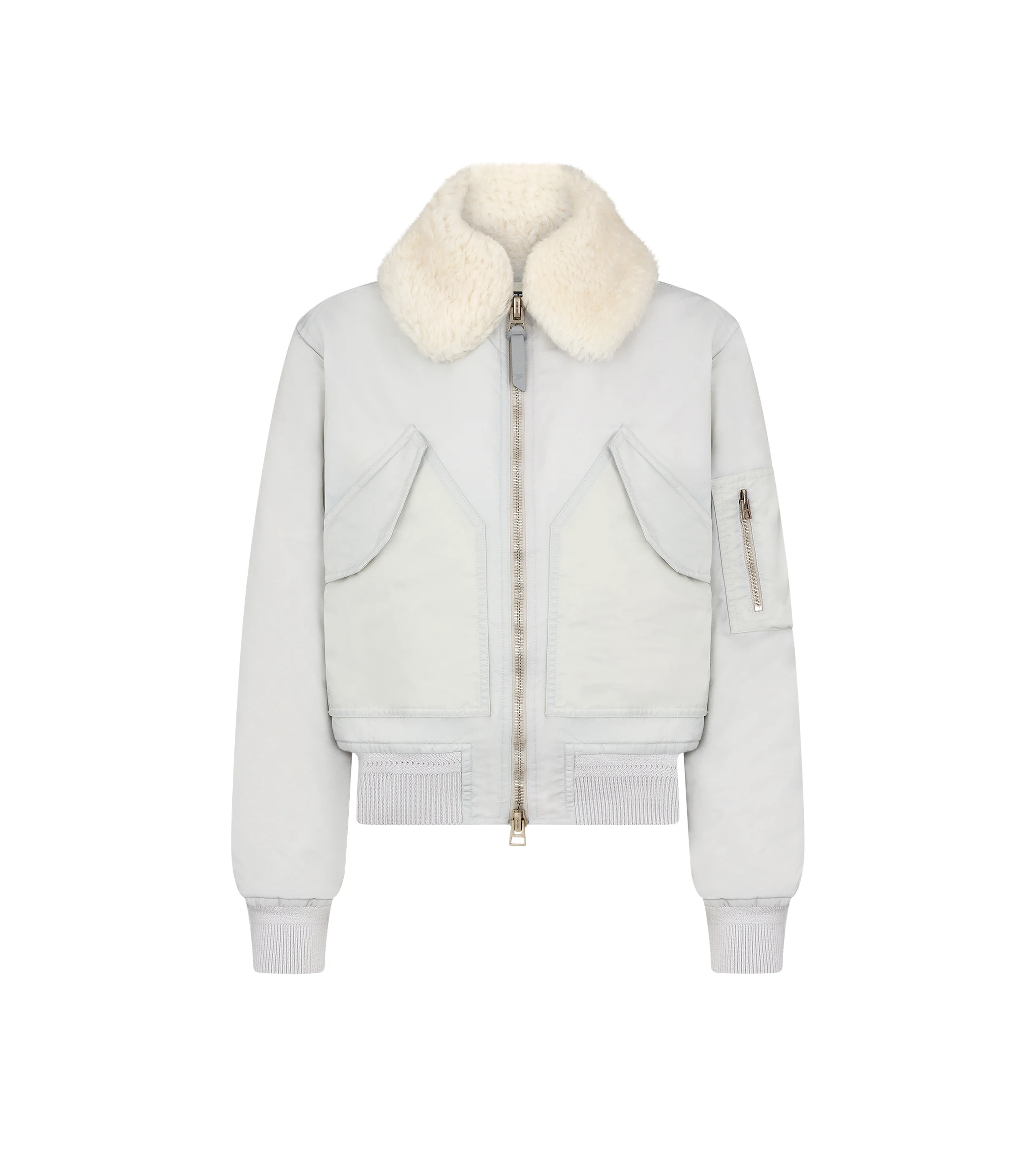 TECHNICAL TWILL FLIGHT BOMBER WITH SHEARLING COLLAR