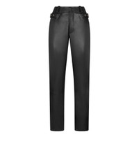 - BIKER PANTS - RELAXED FIT - MID-LOW WAIST - CURVED “O” SHAPED LEG - ADJUSTABLE SIDE BELTS WITH METAL BUCKLES AND EYELETS - LEATHER FACING AT INSIDE LEG HEM - RAW-CUT AND PAINTED EDGES ON LEATHER DETAILS - CENTRE FRONT CLOSURE WITH STITCHED CONCEALED PRESS SNAP BUTTON - BACK POCKETS WITH METAL TOM FORD ZIP AND NEW "H" SHAPED ZIP PULLER - FLY CLOSURE WITH TF METAL ZIPPER - PRESSED TF LOGO DETAIL ON RIGHT BACK POCKET - VINTAGE SILVER FINISH HARDWARE - HALF-LINED - CRAFTED IN TEXTURED GRAIN LEATHER - 100% CALF LEATHER
