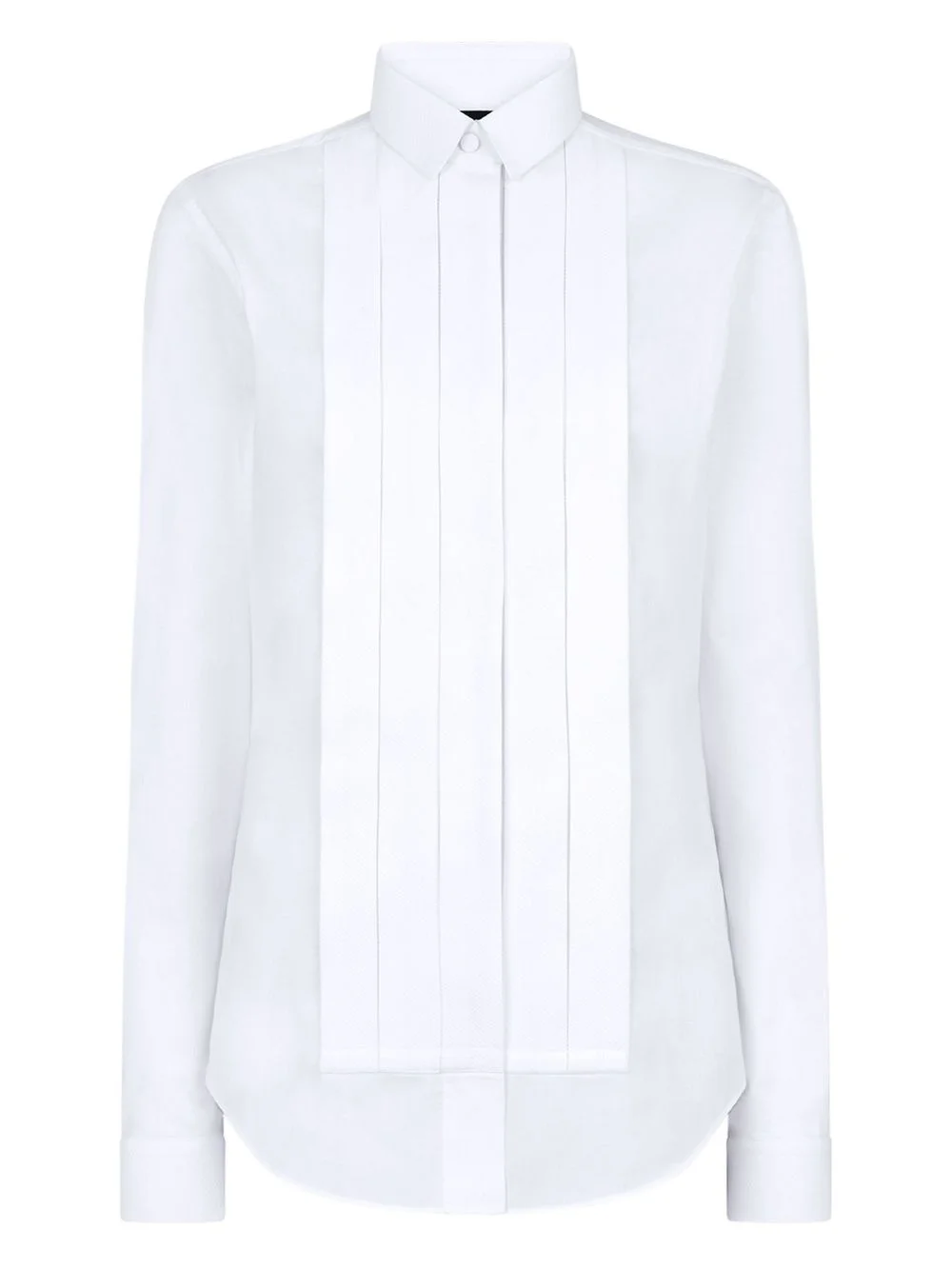 pleated shirt Highlights - White - Pleated detail - Button fastening - Long sleeves - Buttoned cuffs - Curved hem Made in Italy Composition Cotton 100% Washing instructions Read Manufacturer Guidelines