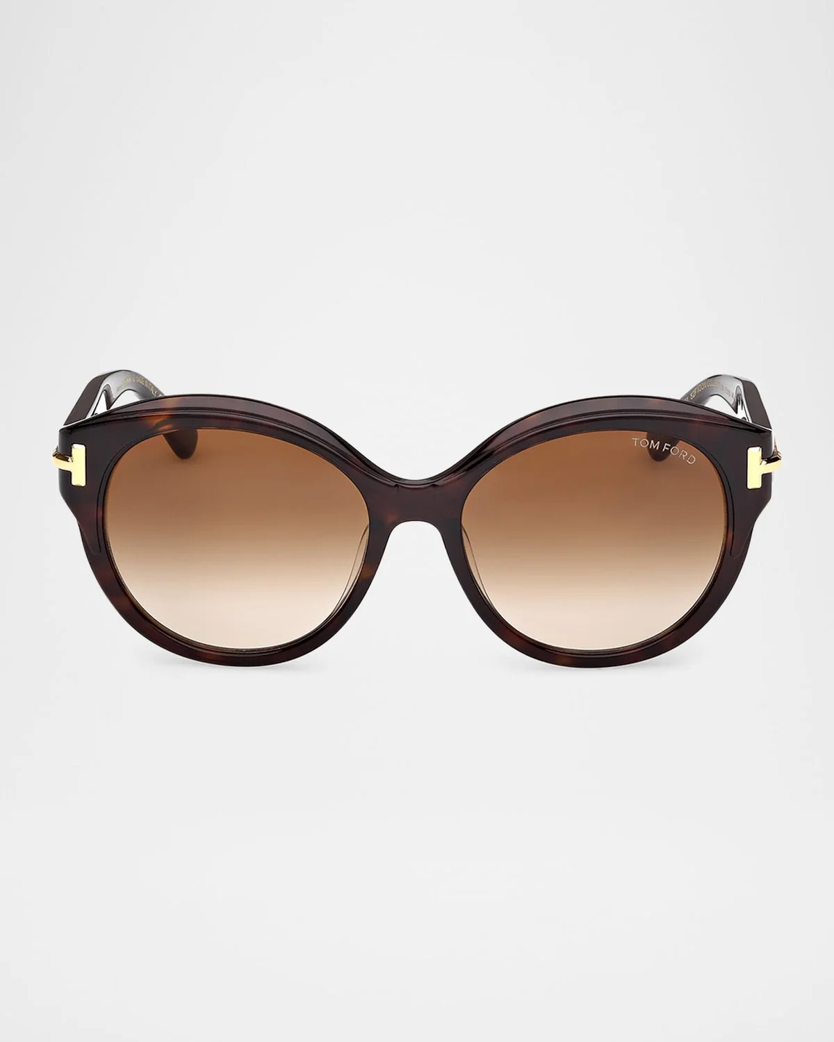 - TOM FORD round acetate sunglasses from the Icon collection - Eye/bridge/temple (in mm): 57-18-140 - Solid lenses - Saddle nose bridge - Thin, tapered arms - Signature T hinges - Acetate - 100% UVA/UVB protection - Made in Italy - Proposition 65 warning for California residents