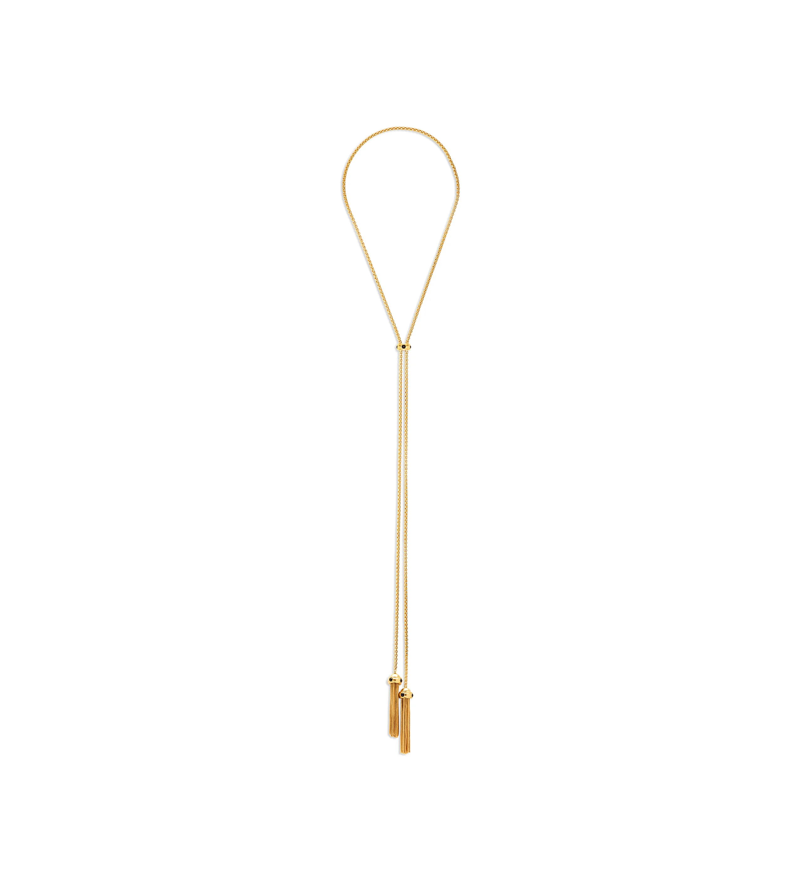 - HANDMADE ELEMENTS WITH RIBBED DETAILING - AND HAND-APPLIED BLACK SWAROVSKI CRYSTAL CABOCHONS - LARIAT NECKLACE EMBELLISHED WITH FRINGED METAL TASSELS - ADJUSTABLE - ENGRAVED TOM FORD MADE IN ITALY LOGO - BRASS: 100% BRASS - CRYSTAL STONES: 100% SWAROVSKI CRYSTAL - MADE IN ITALY